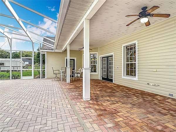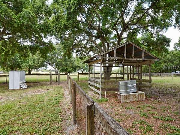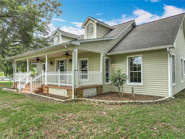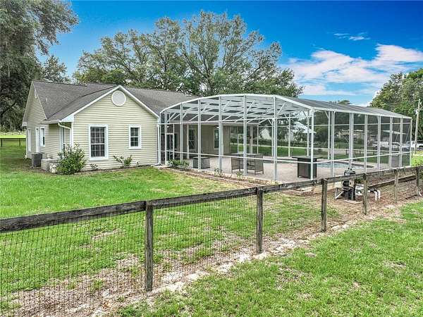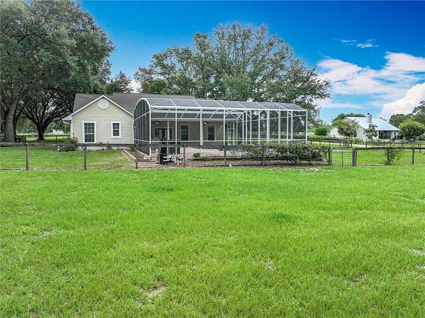 10 ACRES and 2 HOMES on beautiful fenced and crossed fenced, improved pasture with picturesque old southern oaks. Down the gravel, private drive to the custom built in 2002, C/B 2073 sq ft, 4 bedrooms, 2/1 bath main house. Step into the 37'x53' screened enclosed patio and take a dip on those hot days in the 10,000 gallon, saltwater pool and drift amongst the fountains. Entertaining family and guests in this open floor plan and the sit-down wrap around bar in the kitchen will make this house the place everyone gathers for all those special occasions or just because it is Saturday! 10-foot ceilings throughout this custom home! Formal dining room or great office space at the front of house. Lounge on the white railed front porch in rocking chairs with a cool beverage or coffee in the a.m. and watch your horses or cattle graze. A large master suite with walk-in closet and master bath offers double sinks, tub for soaking and separate shower. Use the second bedroom attached to the jack-and-jill bath as a dressing suite with the 2 additional large closets or perfect for the baby's room. Split plan offers the space everyone in the household needs. Homes of Merrit (960 sq ft) doublewide mobile home is a 3 bedroom / 2 bath with a big covered rear porch. Great mother-in-law suite, winter guest cabin or income producing rental. Separate parking areas offer privacy for both homes. Covered 2 stall parking and attached shop with a new roof entirely on a concrete slab. RV/Horse trailer awning 15x40. Pastures are 4 board cross railed fenced in the front lending to the southern ranch appeal and the rest of the acreage is no-climb horse wire with top board. Run-in for those rainy days or convert to a stall. Pastures have nice, established bahai grass. Concrete block home with vinyl siding and aluminum soffits - no exterior painting! Dog pens. RV awning. One owner and maintained with pride! Many updates since built. Close to Ocala National Forest and all it has to offer.