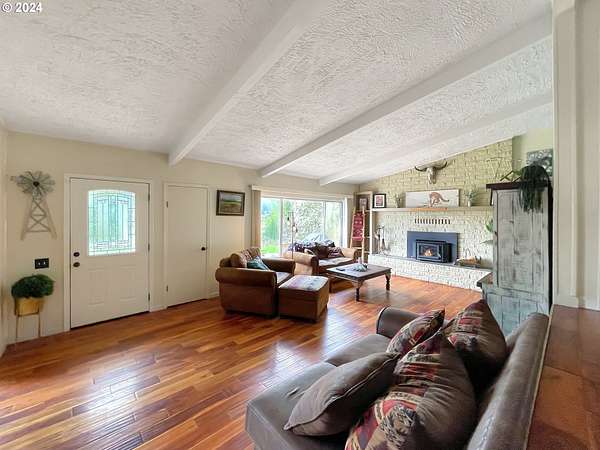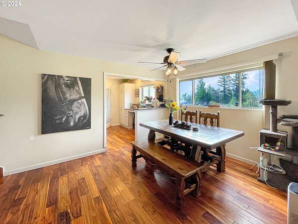 Horse-lovers paradise! Welcome to this charming Gardner Ridge retreat nestled on 4.4 acres of serene countryside. This three-bedroom, two-bathroom home offers a perfect blend of comfort and rustic charm. Upon entering the home, you are welcomed by a well-designed interior that seamlessly combines modern amenities with a warm, inviting atmosphere. The open-concept living and dining areas feature large windows that allow plenty of natural light, paired with the beautiful Acacia hardwood to highlight the tasteful finishes. The kitchen is equipped with stainless steel appliances, ample counter space, and stylish cabinetry with granite countertops, making it a delight for both casual and gourmet cooks alike.Stepping outside, a fully outfitted barn lives at the North end of the property, a true gem for equestrian enthusiasts. The barn includes four stalls, a tack room for storing riding equipment, a hay room, and self-feeding water pales, providing all the necessary facilities for horse care. The expansive acreage surrounding the home offers endless possibilities, whether it's creating a vibrant garden, establishing walking trails, or simply enjoying the peace and quiet of rural living. Plenty of room to park your RV, trailers, and boats. Located minutes away from Chetco River access.