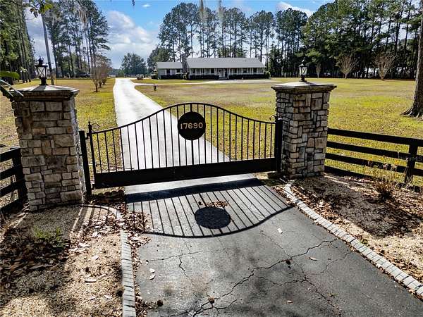 BRAND NEW ROOF!!! Beyond a stately, custom-designed gated entrance, a tree lined drive leads you into a property that feels like its own private world. Here, on 5.5 acres of high, dry pasture just outside the charming town of Williston, sits an immaculately maintained home built with the coveted strength and beauty of Ocala block. This is more than a house--it's a sanctuary where every detail has been thoughtfully crafted.