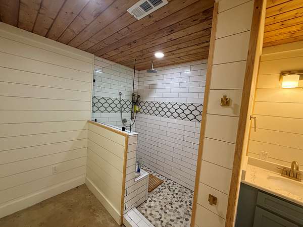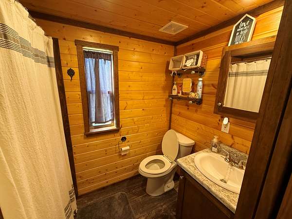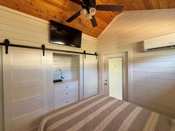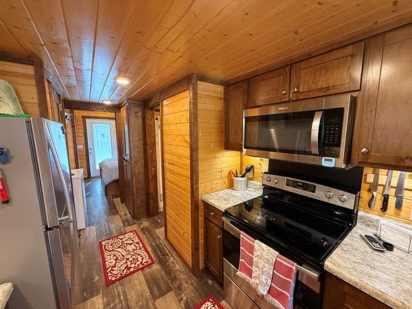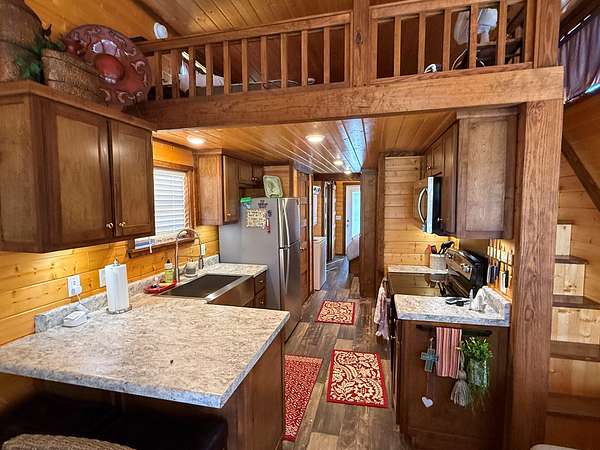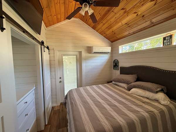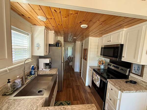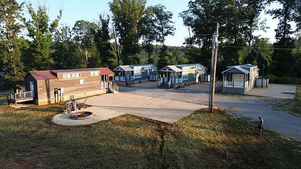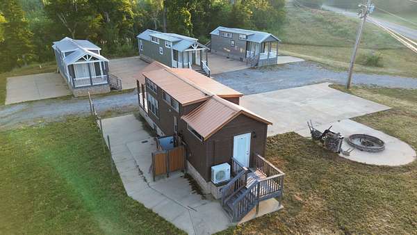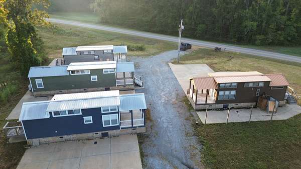Four Tiny Homes:Each wood-frame tiny home is built on pier foundations and features Hardie Plank siding with a durable metal roof. Three measure approximately 12' x 34' (408 sq. ft.) and one measures 12' x 44' (528 sq. ft.).Each home includes one bedroom, one full bathroom, a kitchen and living area, a laundry closet, and a small loft. Amenities include a refrigerator, dishwasher, washer/dryer combo, mini-split HVAC system, exterior shower, and concrete parking pad.