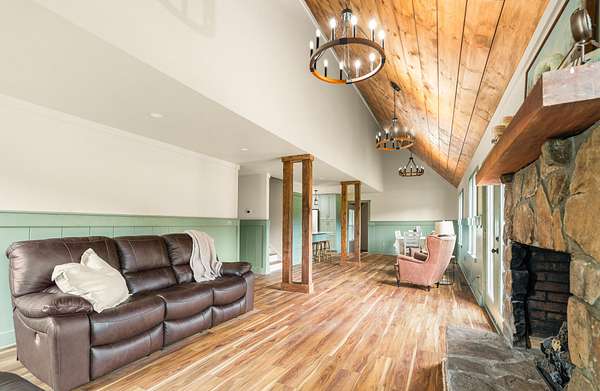 Every detail has been curated to balance masculine craftsmanship with fairytale charm--rich woods, soft hues, and dramatic architectural moments come together to form a home that feels both unique and extraordinary. Expansive windows frame the welcoming scenery, blurring the line between indoors and out while filling each room with golden, natural light.