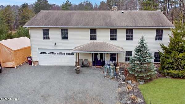 Motivated Seller - Beautiful Home Near Lake Wallenpaupack!Don't miss this unique opportunity to own a beautifully updated 3-bedroom, 3.5-bath home with bonus room on 1.58 acres, just minutes from Lake Wallenpaupack and with no HOA!Step inside to find gorgeous open living areas filled with natural light, a spacious kitchen and dining area, and radiant floor heating for year-round comfort. The luxurious primary suite offers its own private balcony, the perfect spot for morning coffee or simply taking in the peaceful surroundings.Outdoors, the property shines with a private pond, mature fruit trees, and thoughtfully planted shrubs and trees that provide beauty and privacy throughout the seasons. The spacious two-car garage adds both convenience and storage.Whether you're searching for a full-time residence or a relaxing getaway, this home combines comfort, charm, and a fantastic location.Motivated seller--bring your offers and schedule your showing today!