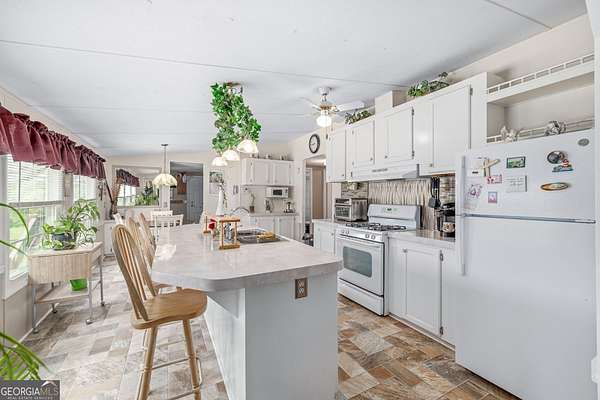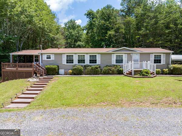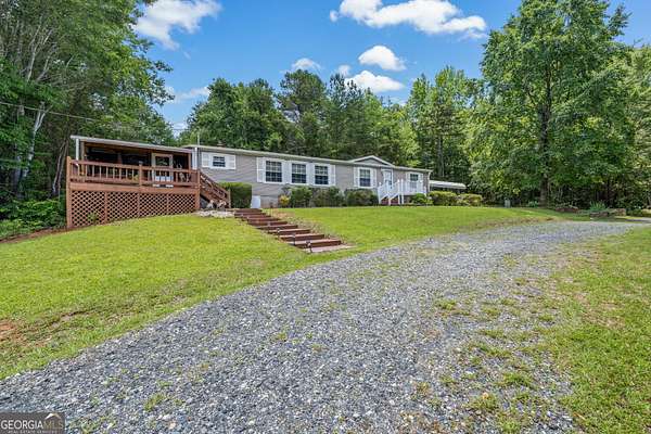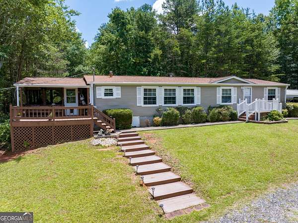 Escape to the tranquility of country living with this beautifully maintained manufactured home situated on just over 11 acres of private land, only minutes from Lake Hartwell. This spacious home features a split bedroom layout with three bedrooms and two full bathrooms, a large kitchen with a center island and breakfast area, and a dedicated mudroom/laundry for added convenience. Primary bedroom ensuite bath has soaking tub, separate shower, and his and hers closets. Enjoy the outdoors from multiple spaces including a welcoming front porch, two decks, and a large screened-in porch, ideal for relaxing or entertaining. The property is well-equipped for a variety of uses with approximately eight acres of fenced and cross-fenced pasture, a stream flowing through both fenced areas, and a holding pen-making it perfect for livestock or hobby farming. Additional improvements include a four-stall pole barn with electricity, a detached garage/workshop with water and electric, and an outbuilding with power. Covered RV parking with water and electrical hookups and two detached carports offer ample room for vehicles and equipment. Offering the rare combination of peaceful seclusion with close proximity to recreational opportunities on Lake Hartwell, this property is ideal as a full-time residence, mini farm, or country retreat.