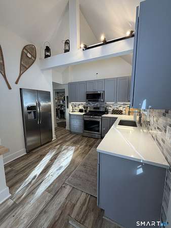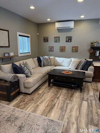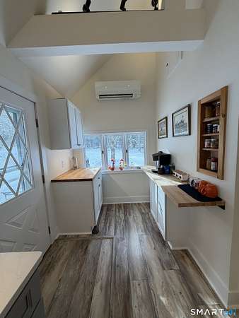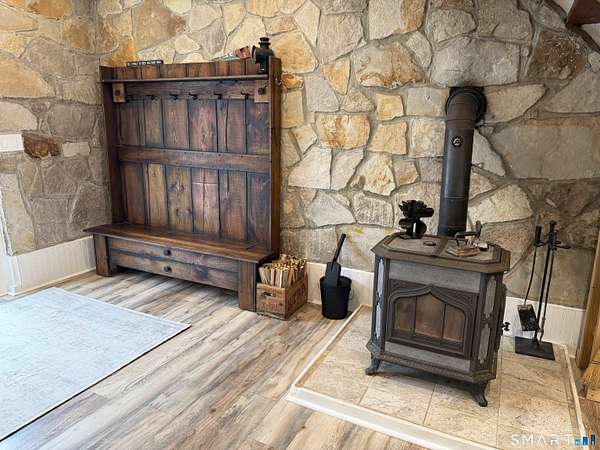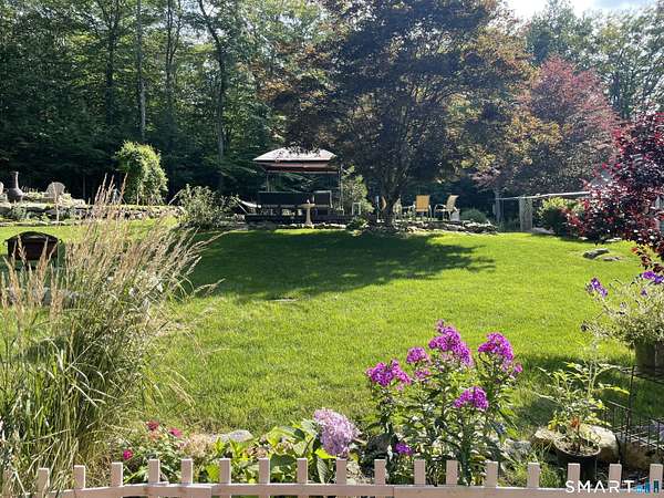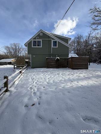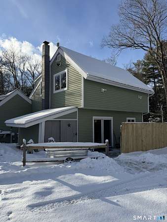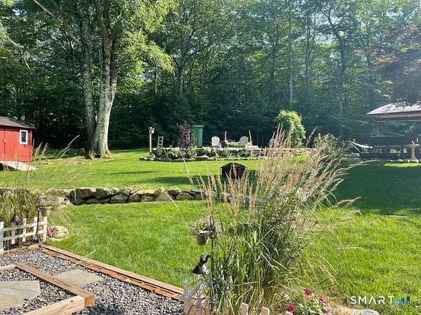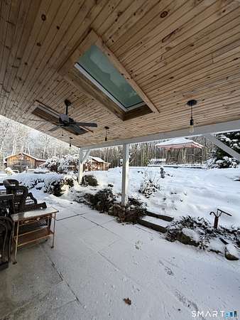 Welcome to your secluded turn key country retreat in Norfolk, tucked away down a scenic dirt road, offering peace and quiet away from traffic. This property is a haven for nature lovers, with abundant wildlife, especially bluebirds, and stunning western sunsets visible from the bluestone patios. The outdoor space is perfect for entertainment, featuring ample room for gatherings and several outbuildings for storage, including a potting shed. A finished cabin on the property comes fully equipped and insulated, making it a versatile space with endless possibilities. Under the blanket of snow lies a beautifully landscaped yard with multiple garden beds, mature trees, and a tiered lawn accented by stone walls, all awaiting the warmth of spring. The home itself is designed for comfort, featuring a cozy woodstove that warms the space during cold New England winter nights. It has been fully remodeled, showcasing a tastefully updated kitchen and two full baths, including a main bath with an oversized tile shower complete with a rain head. The expansive primary suite offers the potential for additional bedrooms, complemented by a spacious primary bath. Recent upgrades, including new windows, a roof, and a septic system, enhance the home's appeal, while the large open floor plan allows for creative customization.