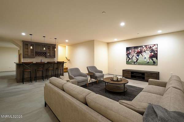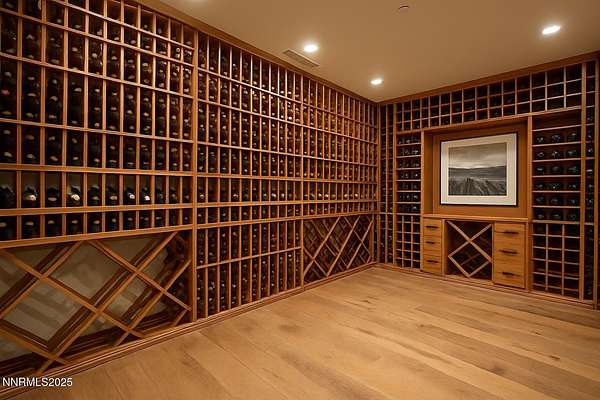 Perched high above the Carson Valley, where the air is crisp and the views seem to stretch forever, sits a single-story mountain retreat unlike any other. Tucked behind the private gates of Clear Creek Tahoe, this 1.88-acre estate blends the serenity of nature with refined elegance. The moment you step inside, the walls of glass frame sweeping vistas of the valley floor and the rugged peaks of the Sierra mountains. Sunlight floods the 6,448 square feet of thoughtfully crafted living space, where soaring ceilings and open, flowing rooms invite gatherings both grand and intimate. With an expansive 1,000 square foot patio facing south over the Carson Valley, the evening views are endless. Four spacious bedrooms, each with its en-suite bath, promise restful nights and quiet mornings. The heart of the home is built for both comfort and style-high-end finishes, warm natural textures, and seamless indoor-outdoor living make every day feel like a retreat. An expansive wine room, accommodating over 2,000 bottles, is a lavish haven for the true wine aficionado. Downstairs, a 678-square-foot bonus space offers endless potential: a game room for late-night laughter, or a private theater for cozy movie marathons. Life here extends far beyond the walls. *Note - the pictures are virtually staged and for illustrative purposes only. Clear Creek Tahoe offers private golf, scenic hiking trails, and an exclusive lakefront club on the shores of Lake Tahoe-all just minutes from the vibrant heart of Carson City. This is more than a home. It's where luxury meets adventure, where each sunrise feels like a fresh invitation to explore, and every evening ends with the mountains silhouetted against the fading light.