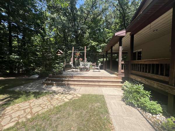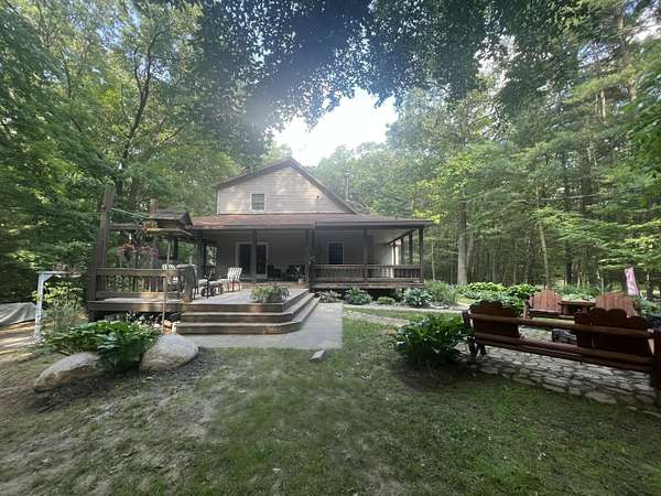 Welcome to this beautifully wooded 4 acres and this charming residence. Features include: 3 BR's and 2-1/2 baths, providing ample room for relaxation and comfort. The heart of the home is a remodeled kitchen. The walkout basement offers an additional BR and bath, adding versatility to the living space. Enjoy outdoor living on the covered porch or patio, ideal for entertaining friends and family. The property includes a remarkable 40 by 60 finished pole building equipped with heat, water, and a half bath, creating an excellent space for gatherings or hobbies. The home is conveniently located just minutes away from Hess Lake and the Muskegon River, perfect for those who appreciate outdoor activities and natural beauty. This property is an ideal place to call home.