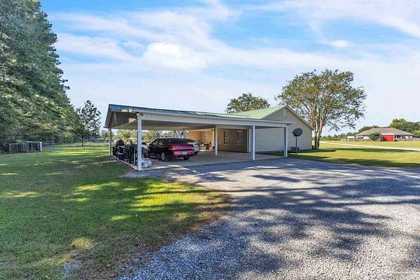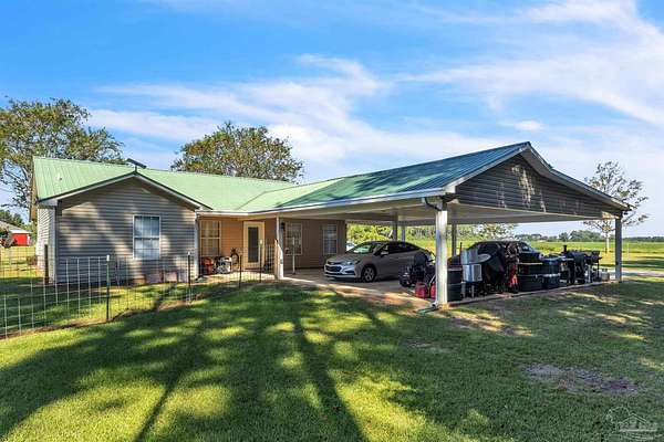 Experience the blessings of country living, where each sunrise over the cotton fields feels like a fresh beginning, and each sunset from the front porch offers a peaceful reminder of this properties beauty. Enjoy this beautifully maintained home that features 3 bedrooms, 2 bathrooms, and a large dedicated office that can serve as another bedroom. Whether you're starting fresh, raising a family, or looking to downsize into a low-maintenance retreat, this property offers comfort and flexibility for every stage of life. Inside, the home is move-in ready with tile flooring in the main living areas and baths, engineered wood in the primary suite, and LVP in the secondary bedrooms no carpet anywhere! Its thoughtful layout makes it both practical and inviting. Set back on a county-maintained paved road with a private gravel drive, the home combines convenience with quiet seclusion. Enjoy peace of mind with a long-lasting metal roof and the versatility of a large 4-carport perfect for multiple vehicles, gatherings, or outdoor entertaining. The property is equally impressive outside, offering an irrigation system in the garden area, a fenced side yard ideal for pets or play, and a well house with lean-to and water spigot for easy access. There's room to plant, play, or simply relax under the wide-open country skies. If you've been dreaming of space to spread out without sacrificing convenience, this little slice of Chumuckla is ready to welcome you home. Schedule your private showing today, opportunities like this don't last long!