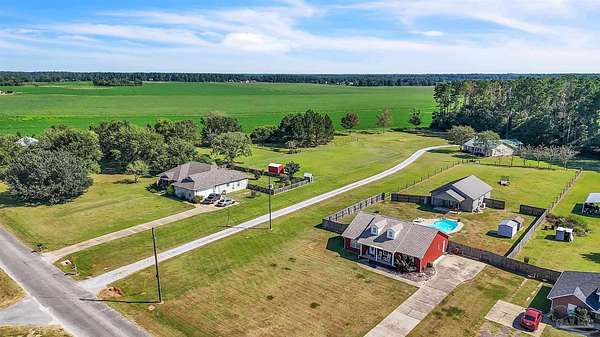 Heading North on Chumuckla Hwy turn left onto Howell Pitt Rd. Then Right onto Annie Penton Rd and the driveway about 1 mile down on the right side and is set back off the road, down the long driveway.
