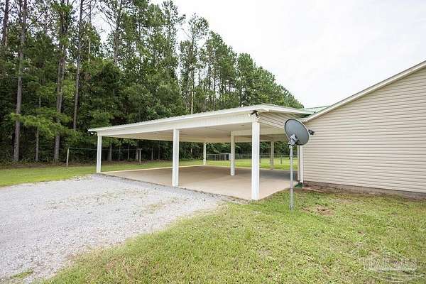 Adorable Home with 2 acres that has been meticulously maintained in Chumuckla, FL ! This home offers 3 bedrooms + 2 Baths + Office! This is the perfect starter home or if you're looking to downsize but still enjoy the beautiful country living that Chumuckla has to offer! Tile flooring in Main living area & bathrooms, master bedroom is engineered wood & spare bedrooms are LVP. NO CARPET. Property is located off county maintained paved road with a gravel driveway to your parcel that sits back off the road. Home boasts a metal roof and a carport that will easily fit multiple cars or can be used for space to entertain. There is an irrigation/sprinkler system in garden area & a fenced in side yard for animals! Well is inside well house . Setup your viewing today! This little dream piece of country living wont last long!