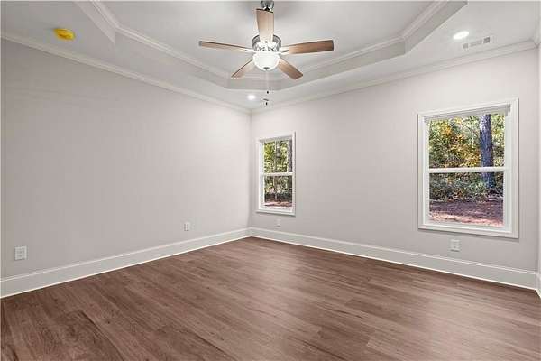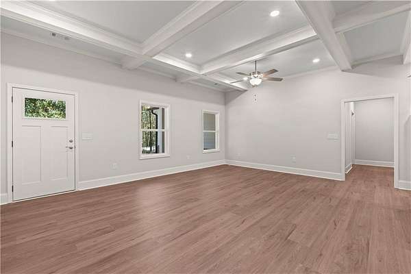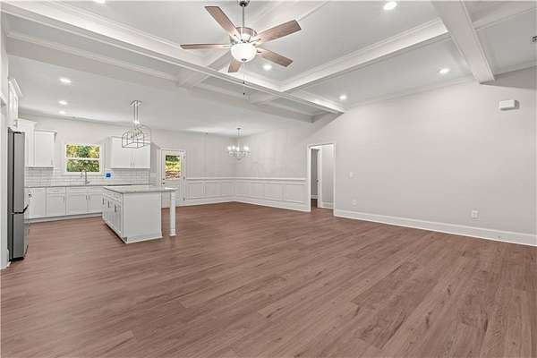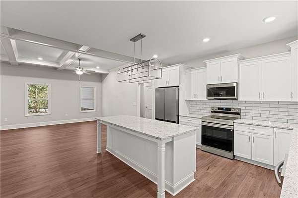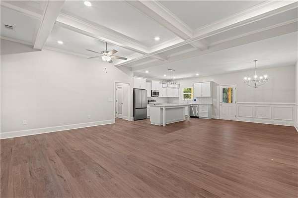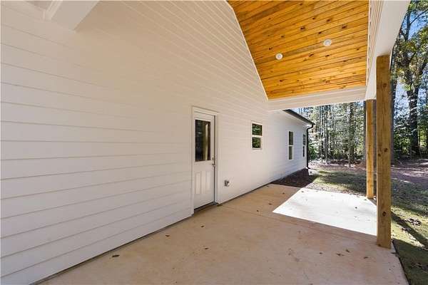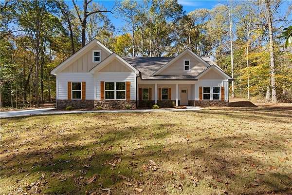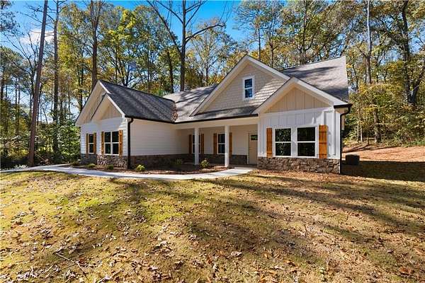 Beautiful New Construction home on a private 1.5 acre lot with mature trees. Spacious open concept living room, dining room and Gourmet kitchen with designer cabinets. Tile backsplash, solid surface countertops. LVP flooring throughout home. Exterior features include Hardy plank siding, architectural roof and sod on all sides of the home. Double garage with openers. Carrier HVAC system. Covered front and rear porch with stain grade wood ceiling. Minutes to I-20