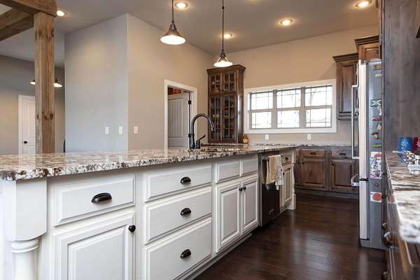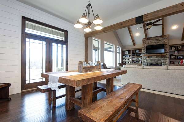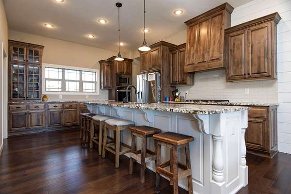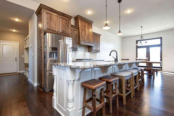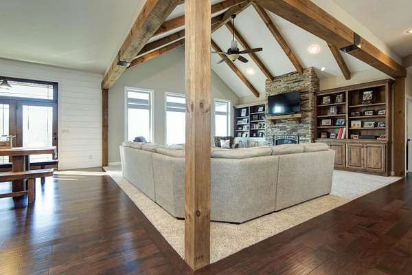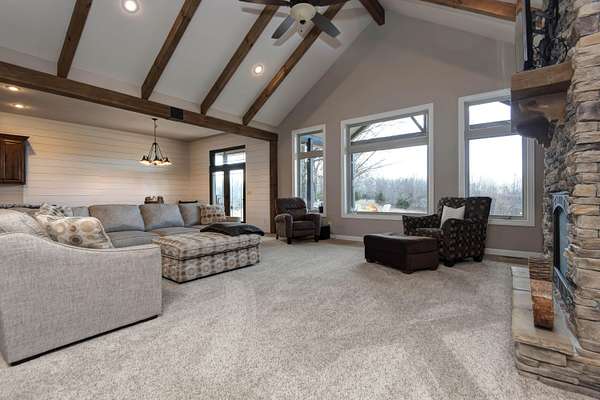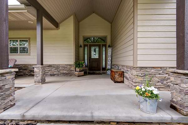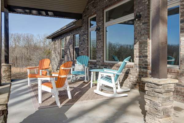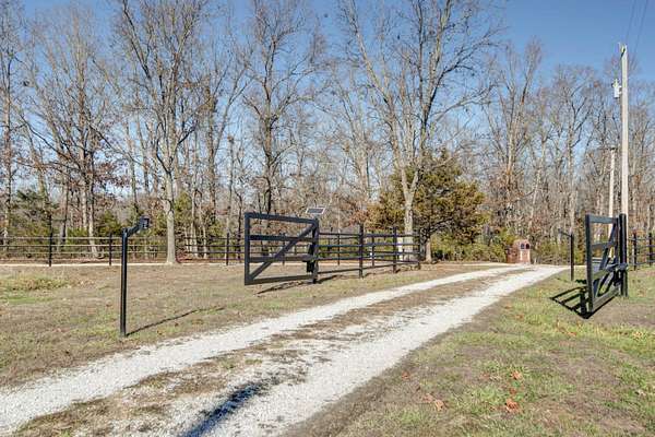 Quality craftsmanship, stunning views! This 5 Bedroom 2 full 1 half Bath, approx. 3,117 sq. ft. home is situated on 24.4 secluded acres and has so much to offer. Discover the charm and sophistication of this home that combines a beautifully designed layout inside with an enchanting outdoor space. This residence ensures that comfort is paired with functionality with an open floor plan that accentuates expansive views and fosters a welcoming atmosphere, ideal for both relaxation and entertaining. Step inside to find a Living Room that's the heart of the home, complete with exposed beams, built-in shelving, and a cozy gas fireplace. The adjoining Kitchen is a culinary enthusiast's delight, featuring a vast island for social cooking, a butler's area for added convenience, and a dedicated Eating Area for delightful dine-ins. The Master Bedroom is a true sanctuary, complete with stylish shiplap walls, a large walk-in closet with a built-in storm shelter, and an en-suite Bath that includes a walk-in shower and thoughtful storage options. 2 additional guest Bedrooms on the main level share a Bath and provide comfortable accommodations, perfectly suited for family or visitors. An additional Bedroom and half Bath rounds out this level. Upstairs, you will find a fantastic space that could be a 5th Bedroom or Bonus Room used for recreational pursuits or a quiet retreat. Don't miss the extra storage space in the attic area. Outdoor living is redefined here, with a covered patio ready for any season, a fire pit for starlit nights, and an exclusive camper site with electric hook-up. The property, mostly fenced, includes an electric gate at the entrance for both privacy and prestige. From quality construction of 2x6 walls and foam insulation in the walls & ceilings to thoughtfully designated spaces both inside and out, this home offers a perfect blend of luxury, comfort, and security. Ample living spaces and the great outdoors combine for a lifestyle of ease & elegance!