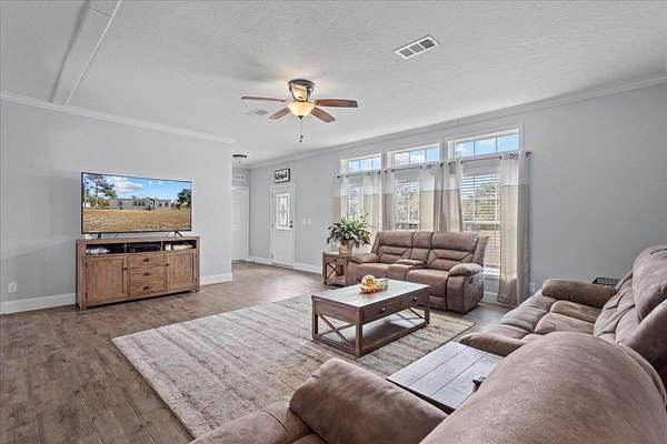 Built in 2022, this charming 3-bedroom, 2-bath home sits on 6.31 peaceful acres in Perry, offering the comfort and simplicity of country living. With 1,800 square feet of well-designed space, the open layout features 9+ foot ceilings, a welcoming living area, and a cozy kitchen ideal for everyday living and gatherings. The split-bedroom floor plan creates a relaxing retreat, with the primary suite featuring a walk-in closet and a private bath complete with a garden tub and separate shower. Outside, the partially fenced acreage provides room for gardening, animals, or simply enjoying the quiet, open space. This property offers a warm, homey feel while remaining conveniently located near town amenities.
