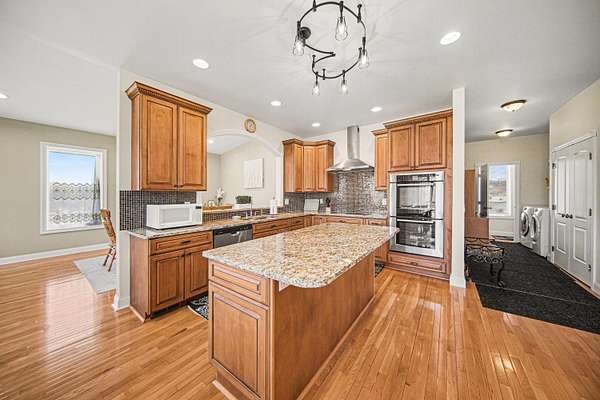 - Bar Fridge, Built-In Electric Oven, Cooktop, Dishwasher, Disposal, Double Oven, Dryer, Refrigerator, Washer