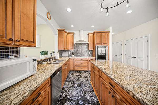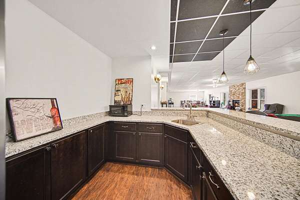 - Ceiling Fan(s), Center Island, Eat-In Kitchen, Garage Door Opener, Guest Quarters, Pantry, Wet Bar