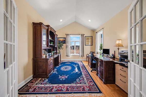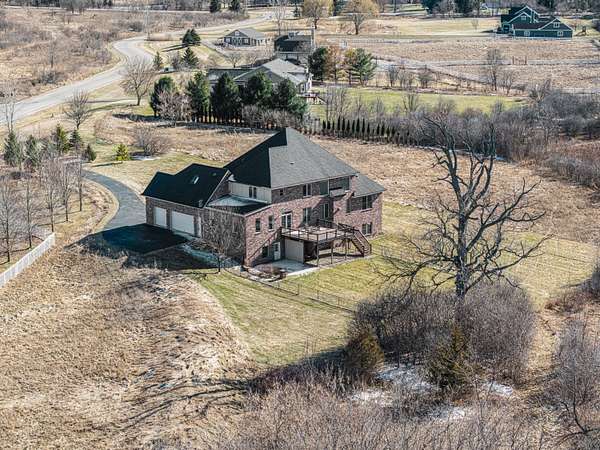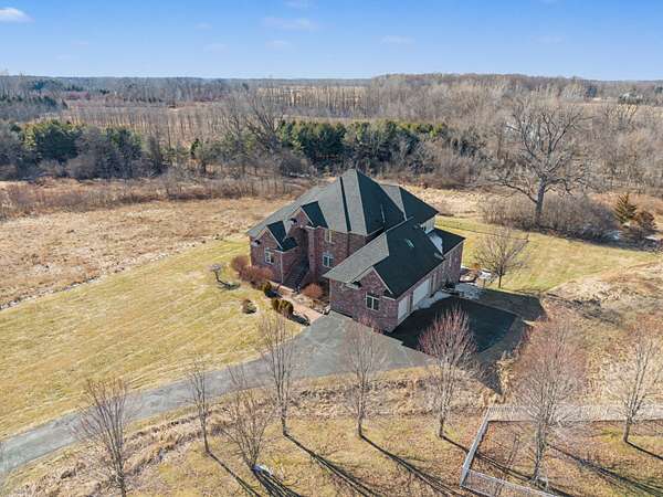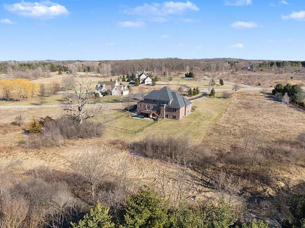 Set on nearly six private acres at the end of a quiet cul-de-sac in an equestrian-friendly neighborhood, this stately custom brick executive estate offers the perfect blend of serene country living and unbeatable proximity to the city. Enjoy peaceful, panoramic views and wide-open space just minutes from downtown Ann Arbor, the University of Michigan campuses, west side shopping and dining, and popular Emerson School. With over 6,200 finished square feet - including a sprawling walkout lower level - this home was designed for both grand entertaining and comfortable everyday living. A dramatic two-story foyer welcomes you, flanked by a formal living room and a private office with cathedral ceiling and French doors. At the heart of the home, the breathtaking two-story great room showcases floor-to-ceiling windows and an eye-catching stone fireplace, filling the space with natural light and warmth. A nearby sitting area and wet bar create the perfect setting for morning coffee or evening cocktails. The expansive custom kitchen is a chef's dream, featuring abundant 42-inch cabinetry, generous granite counter space, a mosaic tile backsplash, a large island with breakfast bar seating, stainless steel appliances, and a spacious pantry. The sunny breakfast area opens to a low-maintenance 20x20 Trex deck - ideal for summer grilling and outdoor entertaining. The kitchen also connects conveniently to the mud/laundry room, attached 3.5-car garage, and one of two main-level powder rooms. A vaulted dining room with kitchen passthrough offers flexibility as a formal dining space, sunlit sitting room, or additional family area. The main-level primary suite is a luxurious private retreat with a tray ceiling, serene views, walk-in closet, and spa-inspired bath complete with dual vanities, spa tub, and separate shower. Upstairs, three generous bedrooms each enjoy their own walk-in closet and private full bath. An unfinished attic with skylights above the garage provides exceptional storage or the opportunity for future finished space. The full walkout lower level offers incredible versatility and could easily function as a nanny or in-law suite. Highlights include high ceilings, daylight windows, a large recreation/family room with gas fireplace, bedroom, full bath, wet bar, home theater, exercise space, and abundant storage. Step outside to the patio and partially fenced backyard to take in the surrounding natural beauty. Built with uncompromising quality, this home features hardwood flooring, elegant moldings, Pella windows, Trex decking, energy-efficient and soundproof ICF construction, commercial-grade steel joists and beams, plywood subfloors, and a full brick exterior. The nearly six-acre setting provides ample room to build a barn or workshop, add a pool, create lush gardens, install a playscape - or bring all your dreams to life. An extraordinary opportunity to enjoy luxurious finishes, exceptional craftsmanship, and abundant space in a breathtaking country setting - just moments from everything Ann Arbor has to offer.