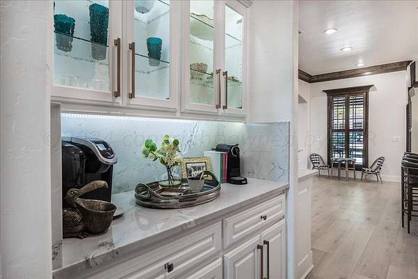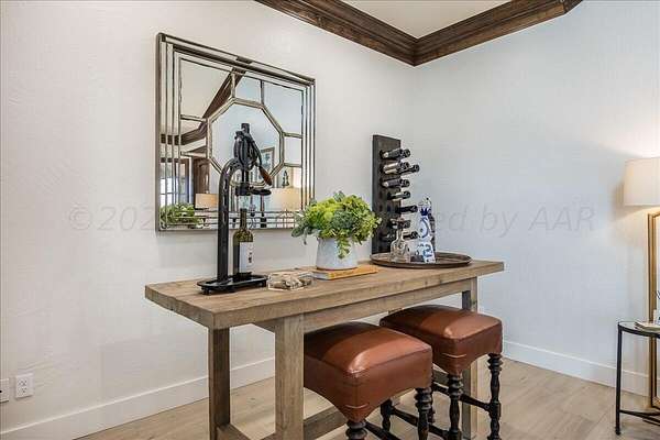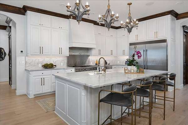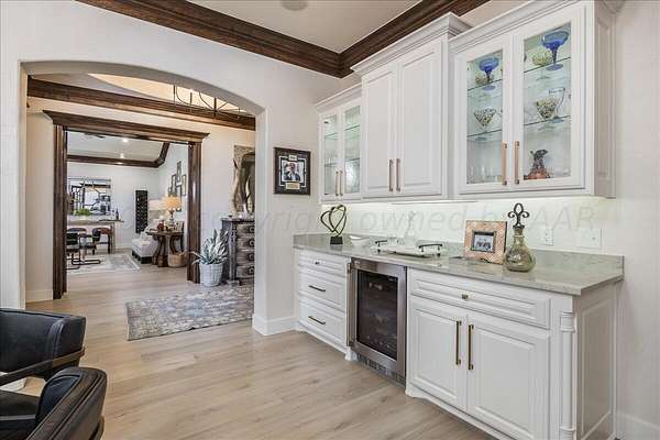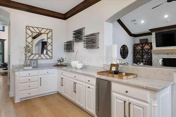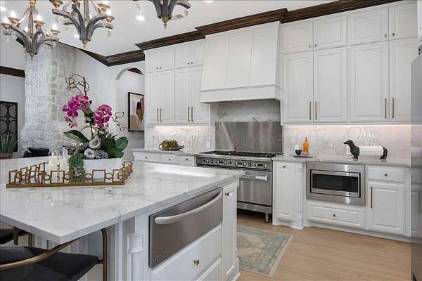 - Dishwasher, Disposal, Double Oven, Ice Maker, Microwave, Range, Warming Oven, Wine Refrigerator