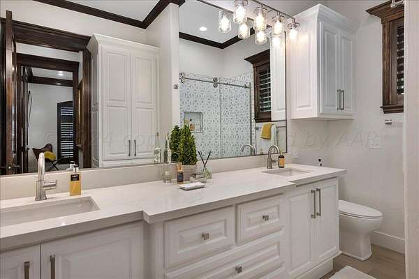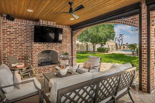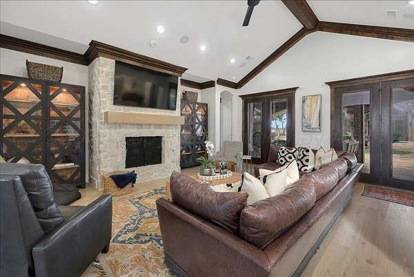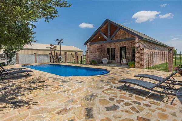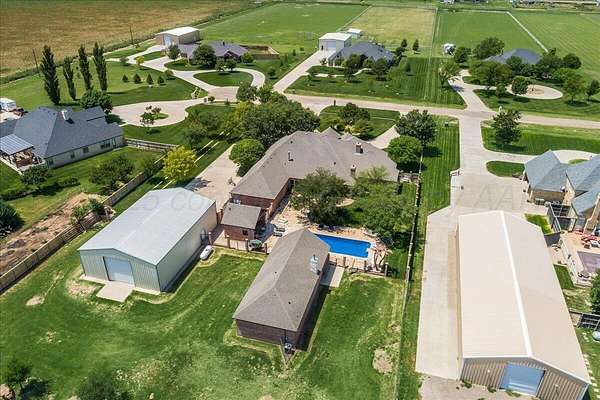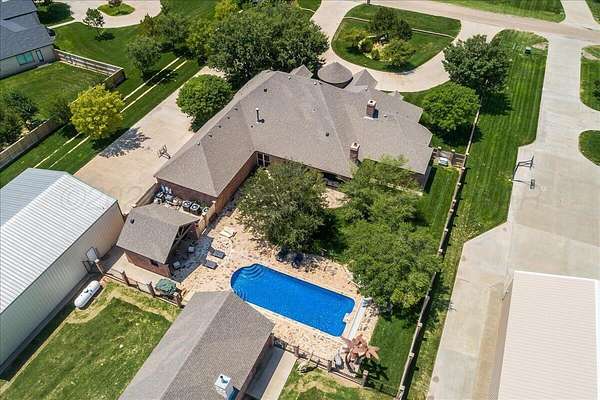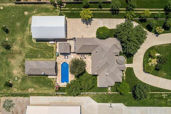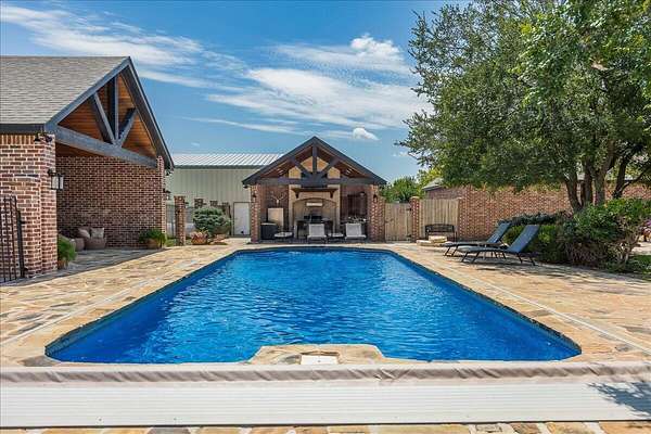 This recently renovated Dove Landing home has it all! Just for starters, the main house has 4 bedrooms, 4.5 baths, 2 first floor living rooms, a formal dining room, kitchen with an oversized island and a breakfast nook, master bedroom with an en-suite bath and a media room. The modern colors are accented with a beautiful Mont Blanc quartzite and champagne gold hardware. For fireplace lovers, this property has 4, with 2 in the main house and one on the back patio. The beautifully manicured backyard leads to an inground pool, an outdoor kitchen, 40x60 shop with 12X14 front and back overhead doors, and a luxury pool house. The pool house has a living room with a fireplace, kitchen, a large bedroom with en-suite bath and a utility room.