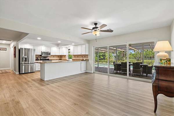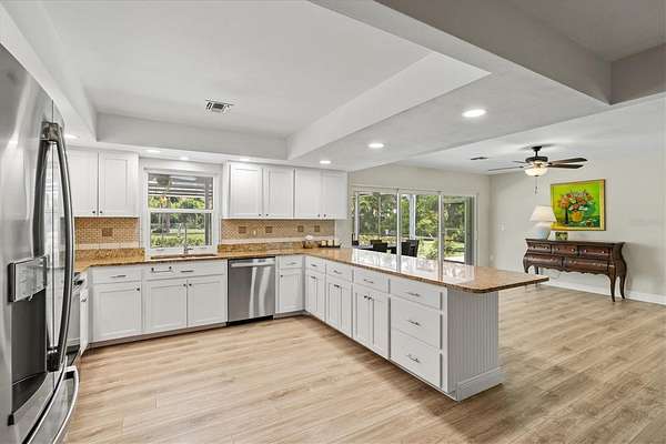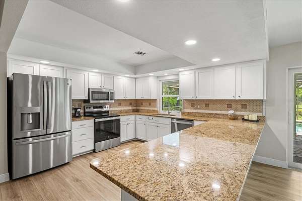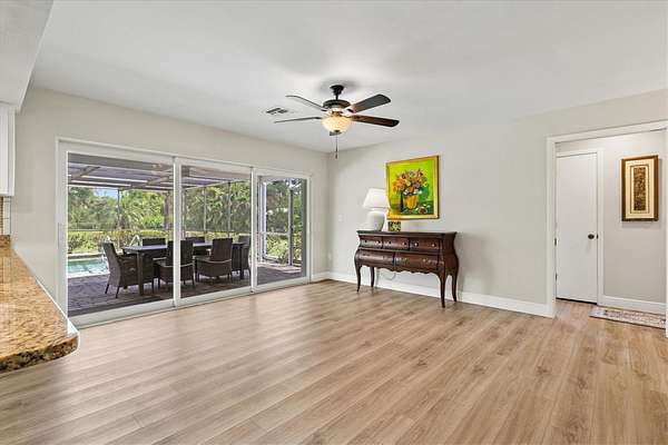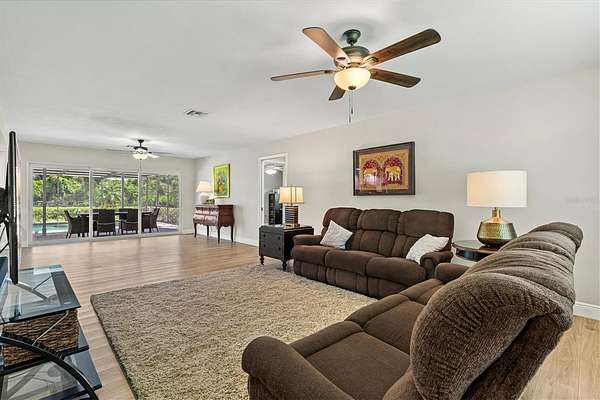 Since purchasing, the owners have invested in extensive upgrades to make this home truly move-in ready. Major improvements include impact-rated windows and doors, new luxury vinyl flooring, updated plumbing and electrical, and fresh interior and exterior paint. The kitchen boasts granite countertops, stainless steel appliances, and solid wood cabinetry with white shaker cabinet doors. Additional updates include a newer water heater, upgraded pool pump, new lanai screens, lighting and ceiling fans throughout, custom California closets, and fresh landscaping with irrigation.