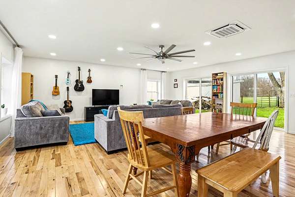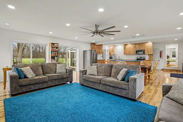 Don't Let the Year Built fool you as it's LIKE NEW w/Amazing Transformations/Updates...Offers an Oversized Garage, Pole Barn & Storage Shed on Nearly 7 Acres!! From the moment you Enter the Great Room Addition (2020), YOU'LL NOT WANT TO LEAVE!!! Great for Family Gatherings/Entertaining - Kitchen w/Center Island (Beautiful Epoxy Countertop), Dining Area & Large Family Area...a Relaxing Sunroom (Read or Enjoy the Wildlife). MORE UPDATES: NEW in 2023: Roof, Bsmt Professionally Waterproofed...2022: Guest Bath gutted...2021: Propane Furnace, Central Air & Primary Bath added...2020: Great Rm Addition w/All New Kitchen, Mini Split, 200 amp Breaker Box & All Appliances...2015: Built 60x40 Pole Barn w/14' High Ceiling, Front Door & Windows in original house, & Water Softener...Hickory Hardwood Floors...Wonderful Epoxy Surrounds on both baths...Large Bsmt is BRIGHT, CLEAN and DRY just waiting to be finished...Approx. 4 Acres are Fenced...Don't Miss Seeing this one and START MAKING MEMORIES!!! Great Room offers Great Lighting w/TWO sliders to outside ... Primary EnSuite was a former Living Room so could be again if you don't need 4 Bedrooms ... Armoire for Primary Bedroom stays for a closet (but plenty of room to add one!) ... Washer & Dryer stay ... Pole Barn was originally built and used for horse stables so still has a dirt floor ... Separate 100 amp box to garage w/Furnace which worked last time used, but Seller hasn't used it in years ... 10x20 Storage Shed (possible chicken coop?) ... Garage Door Opener w/button inside garage, but NO REMOTES ... Purchased as waterfront but nothing in writing to confirm or dispute if own to water's edge, so Buyer to Verify ... Farmer mows the pasture area for free to keep the hay ... Propane tank is NOT rented but is owned by the propane company ... Some info per 3rd parties so Buyer to verify all info.