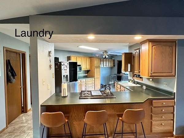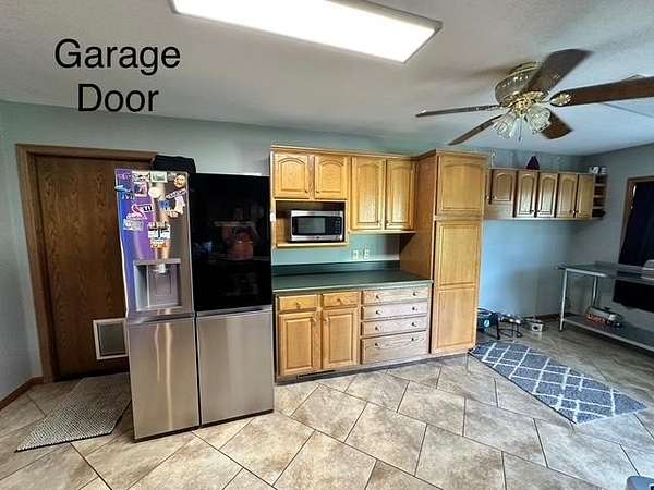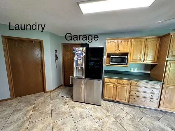 Enjoy quiet country living just a few minutes from Liberal shopping. This nice 4 bedroom 3 bath home sits on a small knoll in the Ranch Addition just west of Liberal. The main level consists of 3 bedrooms, 2 bathrooms, living room, kitchen/dining room, and the utility room. The basement has a nice sized family/rec room with a wet bar for entertaining, an office, 3/4 bath, and a large non-conforming bedroom. Improvements to the property include a 50 year metal roof installed in 2021, new siding 2018, new 50 gallon hot water tank 2017, new central H/A units 2020. Various fruit trees line the south side of the property and a separate detached garage is great for storing lawn mowers, 4 wheelers, or other yard or recreational equipment. Call today to schedule your appointment to see this beautiful home. Richard Farrar, Landmark Real Estate Center, LLC 620-655-6981.