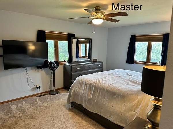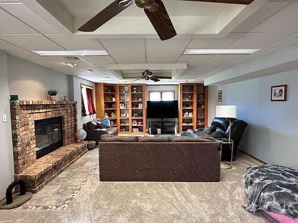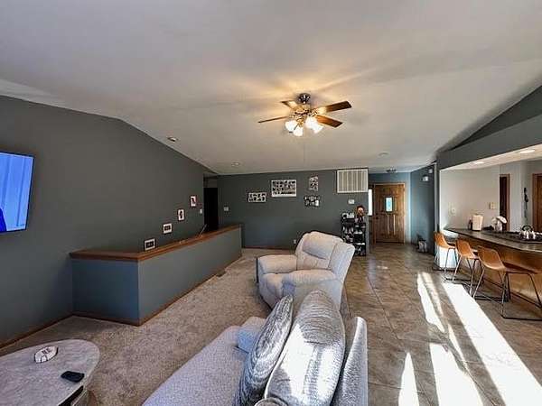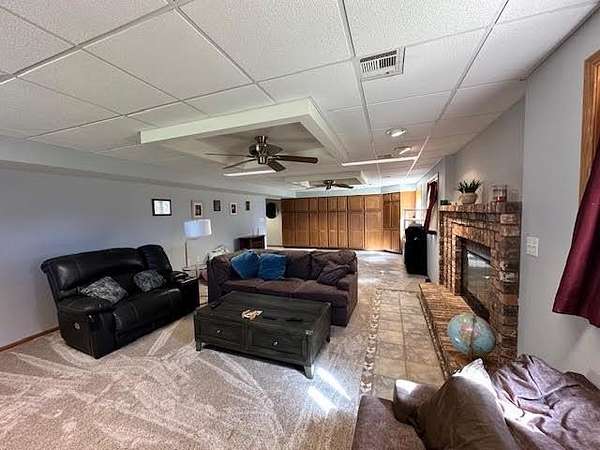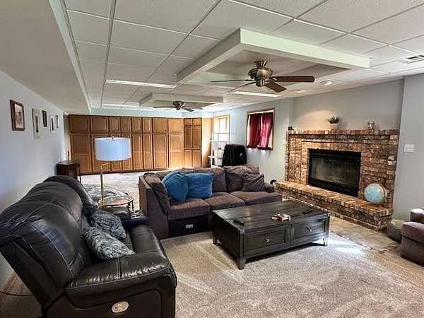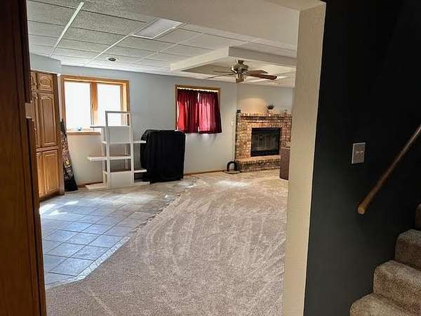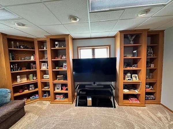 - Breakfast Bar, Ceiling Fan, Fireplace Equipment, Pantry, Recreational Room, Some Carpet, Wet Bar, Window Coverings/All