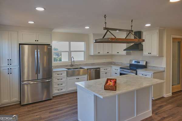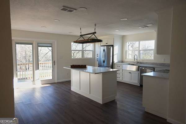 Completely renovated home in 2025, This beautifully updated farmhouse offfers the perfect blend of modern efficiency, custom craftmanship, and peacheful country living. Situated on 2 private acres that was once a pacan grove, this 3612 sq ft home provides space, comfort and timeless style in a serene setting. Inside the home features an open floor plan with high quality finishes throughout. The great room is spacious with a wood burning stove fireplace on a brick hearth leading to the kitchen area. The custom kitchen offers a large center island with a built-in wine fridge and walk- in pantru. An open design ideal for entertaining. There is a large laundry room with custom cabinets, sink and laundry drop from primary bath. Tile flooring is installed in all wet areas, with luxury vinly plank flooring thoroughout the home. There is a split bedroom plan, 4 bedrooms downstairs, 3 full baths downstairs and a bedroom/bonus room upstairs with a half- bath. Primary suite is spacious, room enough for a sitting area/office area with his and hers closets. The primary bathroom includes illuminated mirrors, a separate water closet, oversized walk-in shower with rain head shower, and a classic claw-foot tub- Outdoor living offers a deck on back overlooking private back yard. Home is located a little over an hour from Atlanta and about 35 minitues from Macon. Thomaston is not far way with hospital, resturants and shopping. Country living at is best