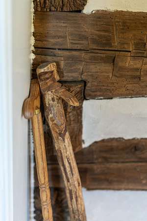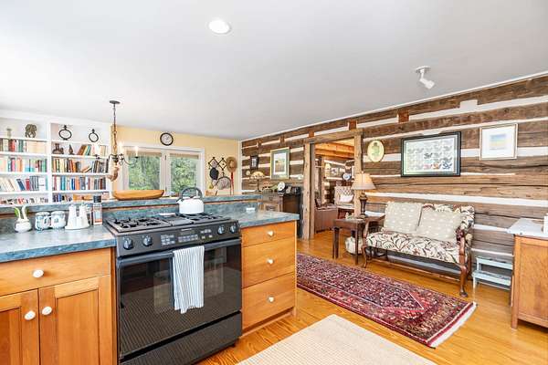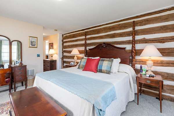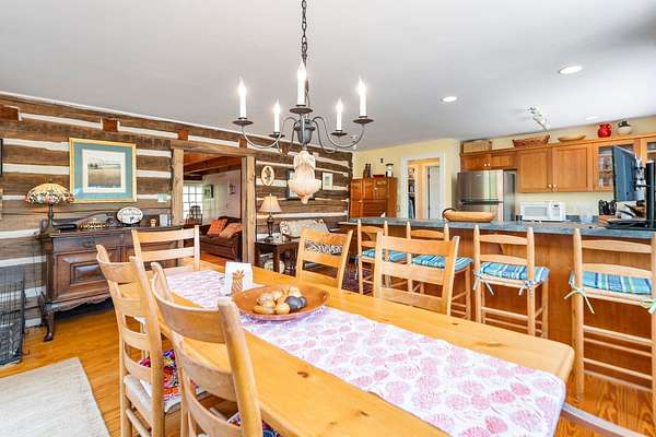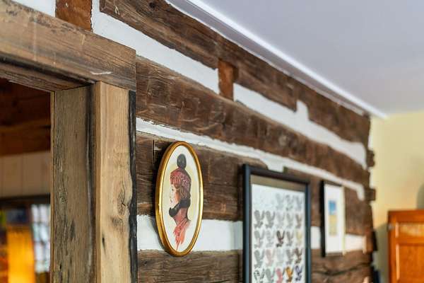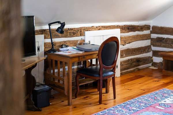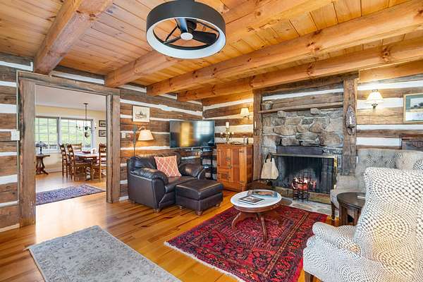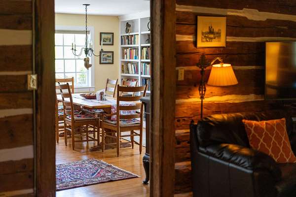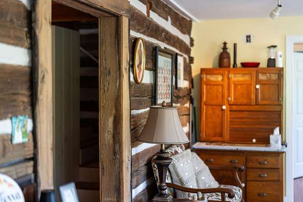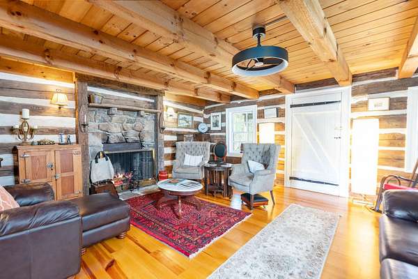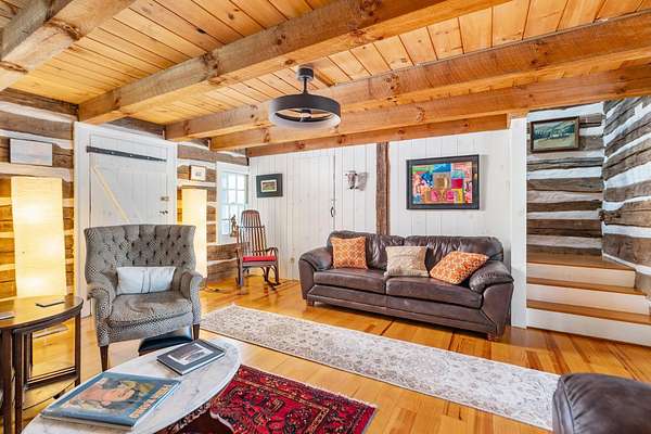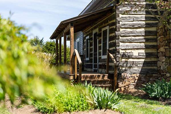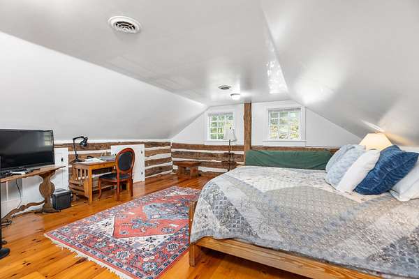 Discover La Casita, a one-of-a-kind log home where historic character meets contemporary design. Centered around logs taken from an original 1817 Yanceyville, NC tobacco barn. This remarkable residence blends handcrafted heritage with a modern architectural addition. A striking stone chimney and fireplace anchor the living space, creating a cozy focal point for gatherings. Built in 2000, the home features wood floors throughout, a handsome kitchen with custom cherry cabinetry, built in bookcases in the dining area, and thoughtful details that highlight the natural beauty of its materials. La Casita is a rare opportunity to own a home that feels both artful and timeless. 2nd floor bedroom is non conforming in that it doesn't have a closet.