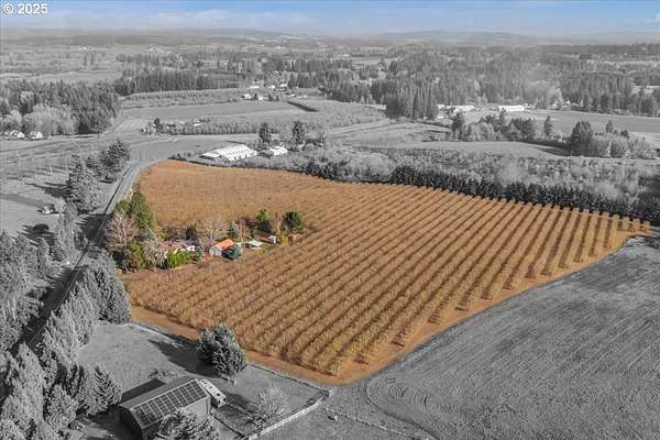 This 16 acre hazelnut farm features 13 acres planted in 2015 to double density Jefferson varietal hazelnuts on 9' x 18' spacing. The orchard is established on highly desirable Helvetia silt loam and Cornelius silt loam soils-both known for their excellent structure, fertility, and suitability for hazelnut production. A 135 GPM irrigation well provides abundant and reliable water supply, supporting consistent growth and long-term productivity.The property also includes a well-maintained 2,100 sq. ft. residence with 2 bedrooms + office and 1 bath. Recent improvements include fresh paint, new flooring, and tasteful tile counters and tile showers. A partial basement provides added storage or workspace, while the front porch and spacious deck create inviting outdoor areas to enjoy the peaceful country views. Supporting the agricultural operation is a useful collection of outbuildings, including a shop, barn, and greenhouse, offering ample space for equipment, storage, and projects.With a productive orchard, reliable irrigation, and a comfortably updated home, this property is a turnkey opportunity for growers or anyone seeking to expand their operation or get started.