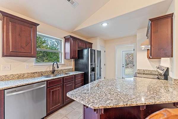 - Eat-in-Kitchen, Split Floor Plan, Woodstove