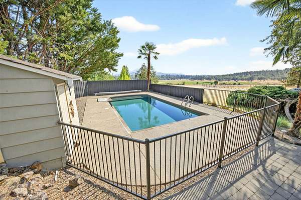 Gorgeous Country Setting with great views and Lots of Privacy. This beautiful, well maintained, 1 story contemporary home has had lots of updating and remodeling. This is a 3-bedroom, 3.0 bath home with approx. (2,323 sq. ft). This home has a composition shingle roof, Hardi-plank siding, vinyl clad windows, carpet, tile, vinyl and Hd-Wd floor coverings. Updated kitchen w/beautiful hardwood cabinets, & granite counters The updated primary bath is also a must see. This home also has newer stainless appliances & a newer FWA heating/air conditioning system. You'll love the private 16'x32' IG pool & rear patio areas. All this situated on a gentle sloping (2.12-acres) fully irrigated w/ beautiful mountain views and 3 fruit trees. Oversize 2 car detached garage w/extra storage, plus an additional 1-car detached garage/shop, storage buildings and RV parking. There's lots of room for addl. out buildings, your toys, & a few animals. City sewer available for future development, an added value!