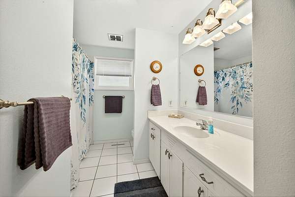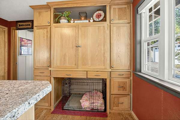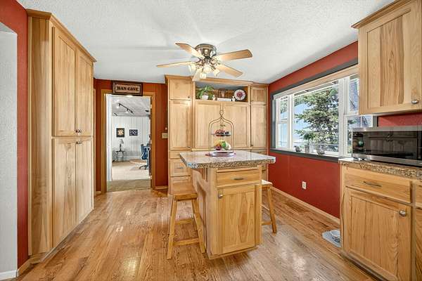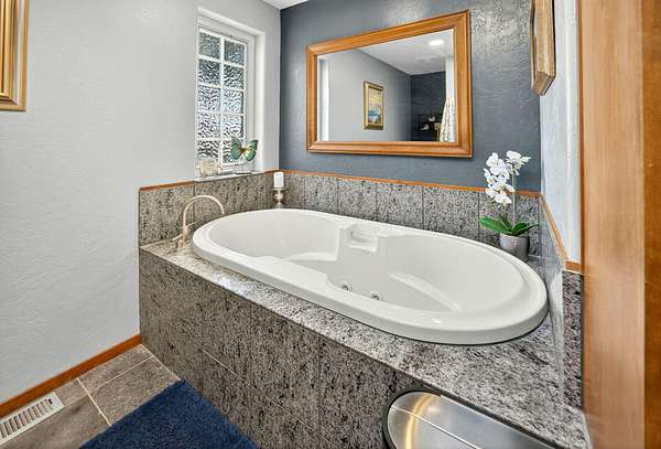 - Breakfast Bar, Built-In Features, Ceiling Fan(s), Fiberglass Stall Shower, Granite Counters, Kitchen Island, Linen Closet, Open Floorplan, Pantry, Primary Downstairs, Shower/Tub Combo, Soaking Tub, Walk-In Closet(s)