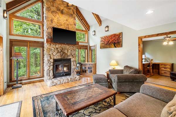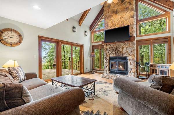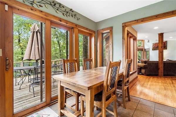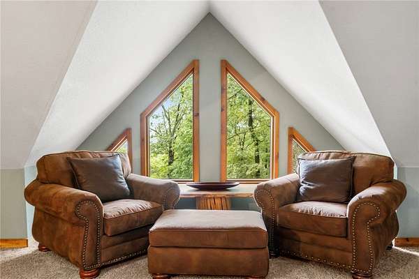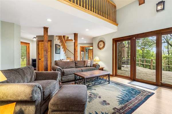 This beautiful cedar home, situated on over 20 acres, offers stunning 360-degree views of rolling hills, perfect for enjoying sunrises and sunsets. The property includes trails for outdoor adventure and can be a short-term rental. All personal effects can convey with the sale. Located just 7 miles from downtown Eureka Springs, and a short drive from biking trails, the Kings & White Rivers, and Beaver & Table Rock Lakes, this is an ideal retreat. Access is via County Road 114, a well-maintained 2-mile dirt road. The home features a bonus room upstairs and loft, and a private deck off the primary bedroom adding to its charm and appeal. A rare combination of peace, privacy, and adventure awaits. Don't forget to take advantage of the generous preferred lender credit being offered! Contact listing Realtor or your preferred Realtor for information to good to pass up!