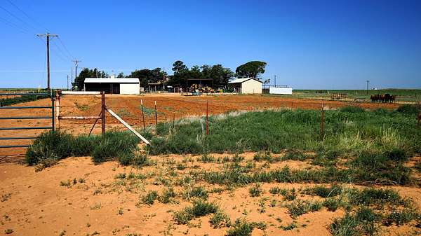 Escape to the serenity of country living with this charming and spacious 2-bedroom, 2-bath home situated on 188.01 acres. With 2,556 square feet of living space, this well-maintained older home features oversized bedrooms, a generously sized primary bathroom, and a comfortable layout that's both functional and flexible for everyday living or entertaining. A one-car garage is complemented by a two-car carport in front, and the fenced backyard is surrounded by numerous flower beds that add color and charm to the setting. The composite roof is currently being replaced, and a new septic system was installed just a few years ago-offering peace of mind for years to come. Inside, you'll find a dedicated office just off the dining room, a large laundry room with ample storage, and a light-filled sunroom that's perfect for morning coffee or taking in the views. Outdoors, the property is well-equipped for horse or livestock enthusiasts and hobbyists alike. A 30' x 40' insulated shop with a concrete floor and gas heat adjoins the west side of the home and is accessible from Highway 385. A second 20' x 40' equipment storage building also features a concrete floor and a powered overhead door. For livestock, there's a 40' x 40' barn with a partial concrete floor, tack room, and interior pens, along with a 10' overhang on the west side for additional shelter. Multiple traps surround the home, ideal for managing horses and cattle. The north and west sides of the property are fenced with approximately 1.6 miles of newer 5-strand barbed wire. In addition, there is approximately 1.5 miles of cross fencing and permanent perimeter electric fencing. Three old irrigation wells have been pulled and capped, and there is an existing pivot pad. The land includes 154.90 acres enrolled in the Conservation Reserve Program (CRP), which pays $6,509.00 annually and runs through 2030. The owner has elected to graze portions of the CRP land in accordance with FSA grazing regulations. This property is also in the first year of a lease option agreement with the Yellow House Wind Energy Center Project. The lease includes a 36-month initial term with a 12-month renewal option. All wind rights will convey to the buyer at closing. Whether you're seeking a peaceful homestead, a weekend retreat, or room to grow, this property offers the perfect blend of space, privacy, and long-term potential.