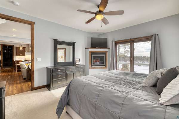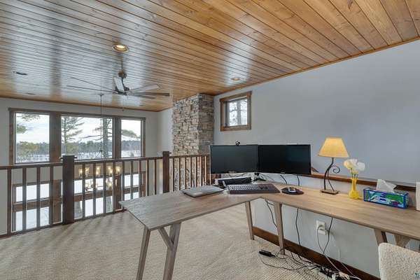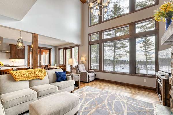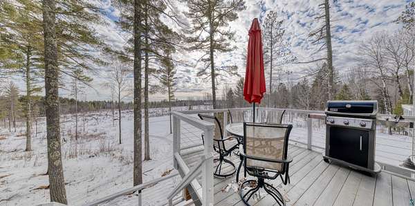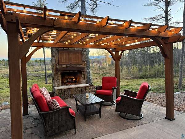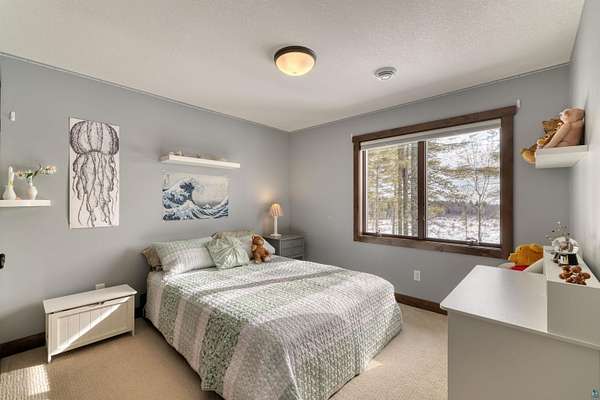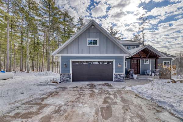 Stunning 4+ bedroom, 4-bathroom home blends timeless craftsmanship with modern comfort and style built in 2018. 30 acres nestled among towering old-growth pines and boasting approximately +/-700 feet of frontage on the Little Stewart River, this property offers a rare combination of privacy, elegance, and natural beauty. Step inside to discover a spacious primary suite complete with a luxurious ensuite bath and heated floors. The open-concept main level is anchored by a soaring 18-foot great room featuring a dramatic stone gas fireplace and a wall of south-facing windows that flood the space with natural light. The gourmet kitchen is a chef’s dream, showcasing rich dark cabinetry, gleaming granite countertops, and premium finishes throughout. Enjoy year-round outdoor living with a cozy screened-in porch equipped with a heater, a generous patio with its own outdoor fireplace, and a secluded hot tub—perfect for soaking in the breathtaking views. Additional highlights include: Hickory hardwood floors Heated floors in the primary bath and mudroom Solid 8-foot wood doors and 9-foot ceilings throughout Walk-out lower-level family room ideal for entertaining Dedicated home office space and ample storage Attached, insulated, and heated garage Impeccably maintained and truly move-in ready, this home is a rare gem that offers refined living in a tranquil, nature-rich setting with glimpses of Lake Superior on the horizon.