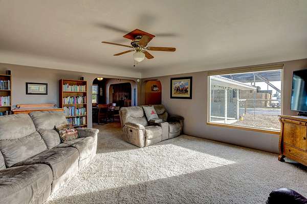 Highly productive 198 acre farm in Central Oregon with 146.9 acres of Deschutes River water rights. This farm is very efficient with three newer center pivots covering the.bulk of the farmable acreage. Property has a nicely updated 4 bed 2 bath home with gorgeous unobstructed views of the Cascade Mountains, and a 360 degree view of the local mountains. The master suite was added in 2012 complete with a walk in closet, jetted tub and a propane fireplace to keep you cozy. Property is conveniently located a paved dead end road only a couple miles from Madras with shopping and schools a very short commute.This property borders BLM lands and includes a portion of Willow Creek Canyon where Mule Deer are frequently seen. Outside is landscaped fenced yard along with a detached garage, a large shop, a hay shed and a horse barn with tack room and storage area. Here is your chance to own a turn key farm in beautiful Jefferson County