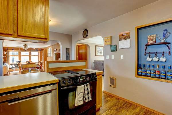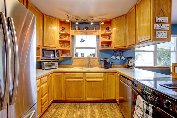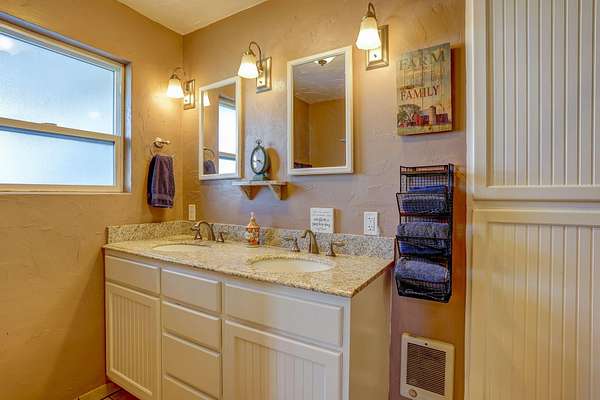 - Ceiling Fan(s), Fiberglass Stall Shower, Granite Counters, Jetted Tub, Laminate Counters, Linen Closet, Pantry, Primary Downstairs, Shower/Tub Combo, Soaking Tub, Solid Surface Counters, Tile Shower, Walk-In Closet(s)
