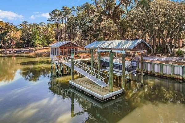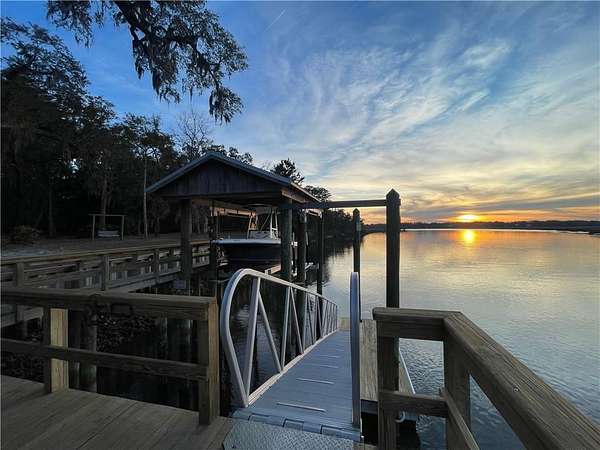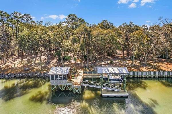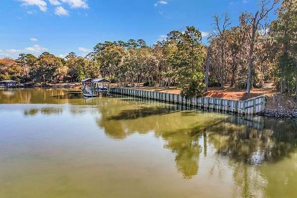 This 5.5 acre deep-water estate offers 400 feet of frontage on the Julienton River, located within the desirable Delta Plantation community. The property features a screened dock with a boat hoist, composite seawall and riprap stabilization, providing convenient access to boating, fishing and coastal living.