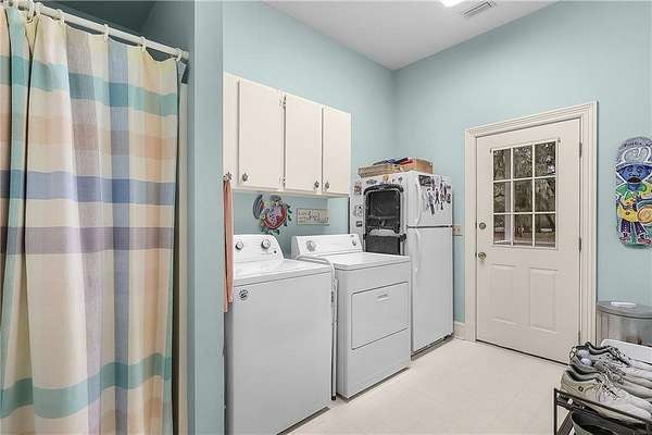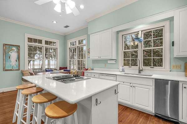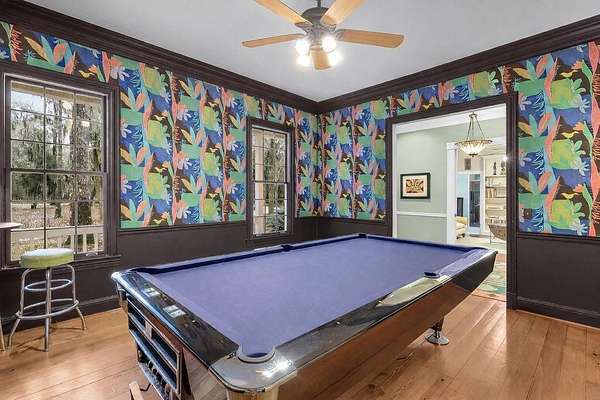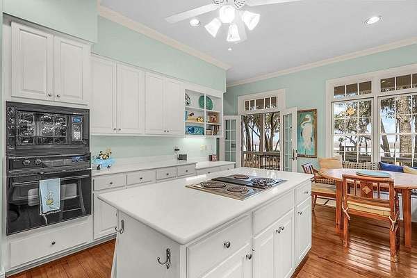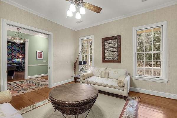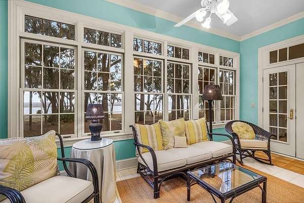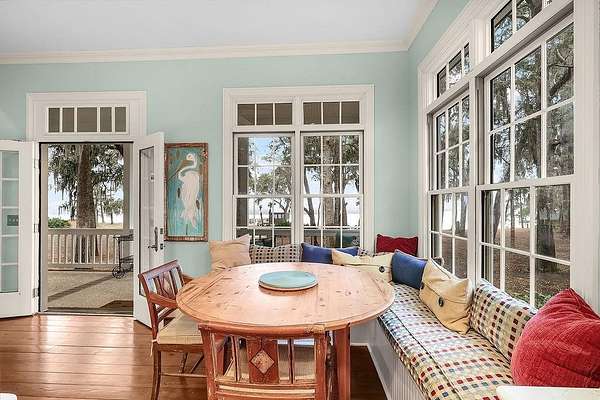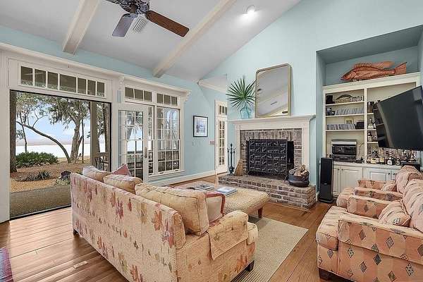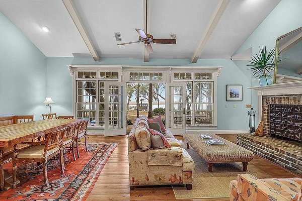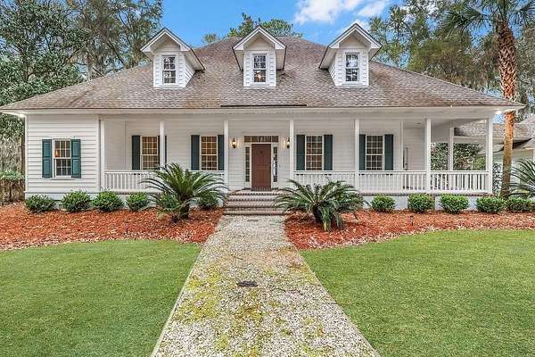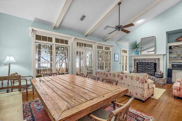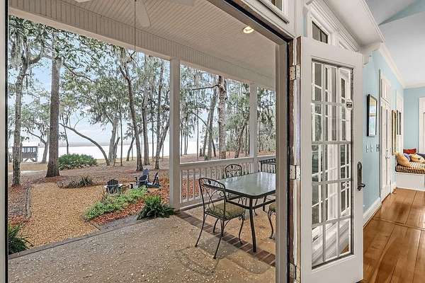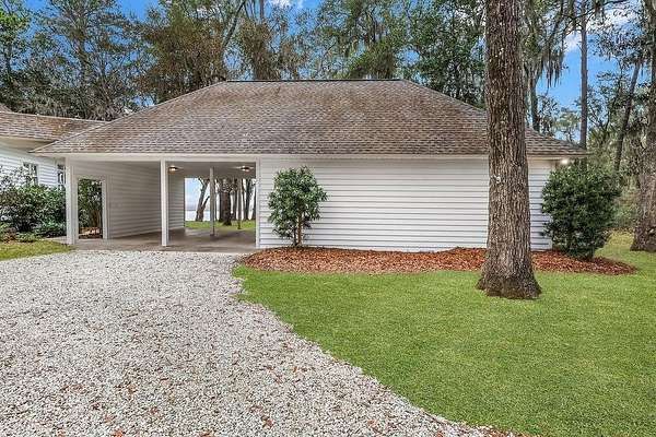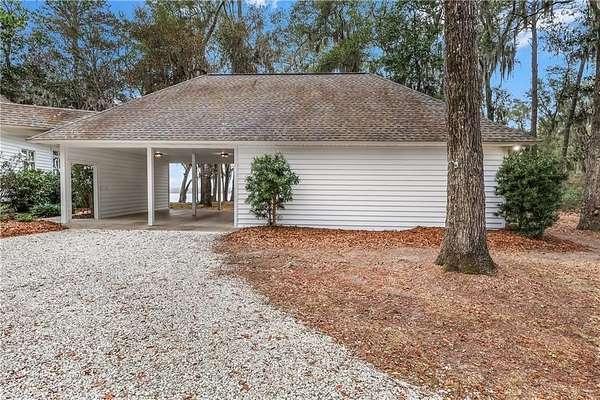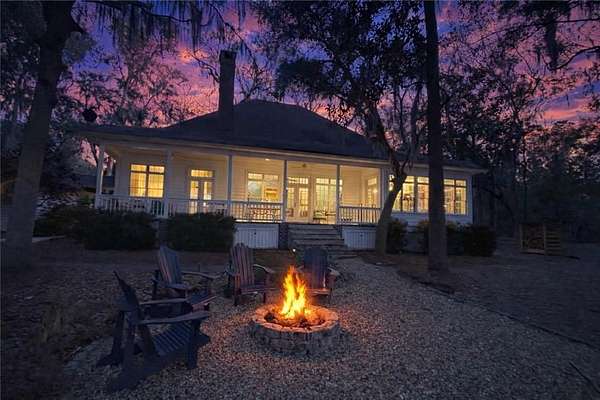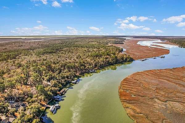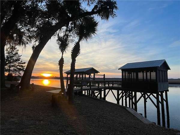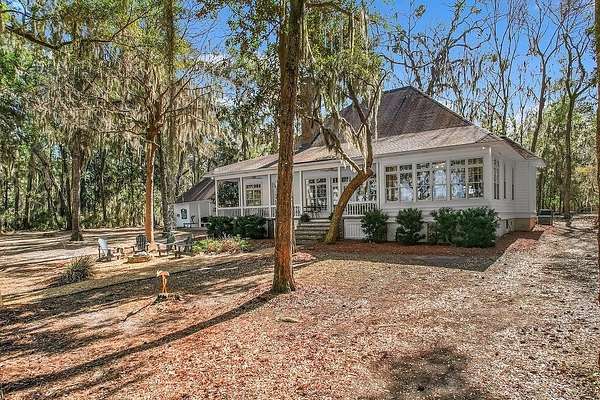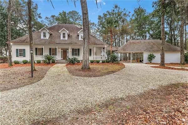 The grounds are shaded by majestic live oaks, creating a picturesque and private setting throughout the property. Both the front and rear porches offer serene outdoor living spaces, where the natural beauty of the live oaks blends seamlessly with expansive river views. Inside, the home showcases heart of pine flooring, a wood-burning fireplace, and a thoughtfully designed layout. Three rooms upstairs can serve as guest bedrooms, offices, or flex spaces, while a sunroom adjoining the primary bedroom on the main level provides a bright and tranquil retreat. Library with built in bookshelves and pool table room or formal dining room adjacent to the kitchen.The home and dock sit on 2 of the 5 included lots offering unparalleled privacy and opportunity for expansion. The remaining parcels include two-1 acre buildable deep-water lots along with one adjacent interior lot, creating the ideal setup for a family compound. See pictures. The detached carport has tons of storage and unfinished square footage above. Delta Plantation is conveniently located by boat minutes away from desirable Shellman Bluff, intracoastal waterways and Georgia’s barrier islands. Sapelo Hammock Golf Course is 15 minutes away. Delta Plantation is located at the end of Harris Neck Road you are close to I-95 with Savannah, Brunswick or Jacksonville shopping and airports.