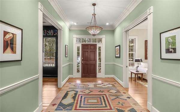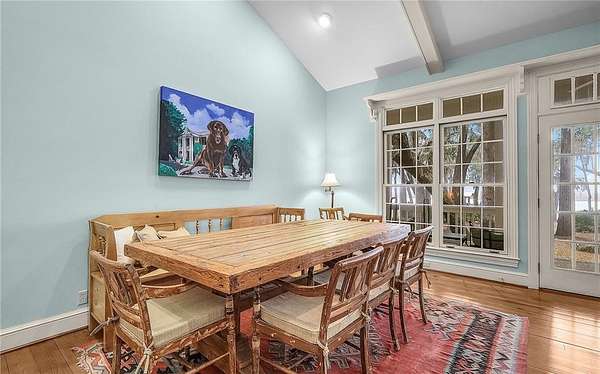This 5.5 acre deep-water estate offers 400 feet of frontage on the Julienton River, located within the desirable Delta Plantation community. The property features a screened dock with a boat hoist, composite seawall and riprap stabilization, providing convenient access to boating, fishing and coastal living. The grounds are shaded by majestic live oaks, creating a picturesque and private setting throughout the property. Both the front and rear porches offer serene outdoor living spaces, where the natural beauty of the live oaks blends seamlessly with expansive river views. Inside, the home showcases heart of pine flooring, a wood-burning fireplace, and a thoughtfully designed layout. Three rooms upstairs can serve as guest bedrooms, offices, or flex spaces, while a sunroom adjoining the primary bedroom on the main level provides a bright and tranquil retreat. Library with built in bookshelves and pool table room or formal dining room adjacent to the kitchen.The home and dock sit on 2 of the 5 included lots offering unparalleled privacy and opportunity for expansion. The remaining parcels include two-1 acre buildable deep-water lots along with one adjacent interior lot, creating the ideal setup for a family compound. See pictures. The detached carport has tons of storage and unfinished square footage above. The community has a clubhouse and community dock and is conveniently located by boat minutes away from desirable Shellman Bluff, intracoastal waterways and Georgia's barrier islands. Sapelo Hammock Golf Course is 15 minutes away. Delta Plantation is located at the end of Harris Neck Road you are close to I-95 with Savannah, Brunswick or Jacksonville shopping and airports.No Flood Insurance required.