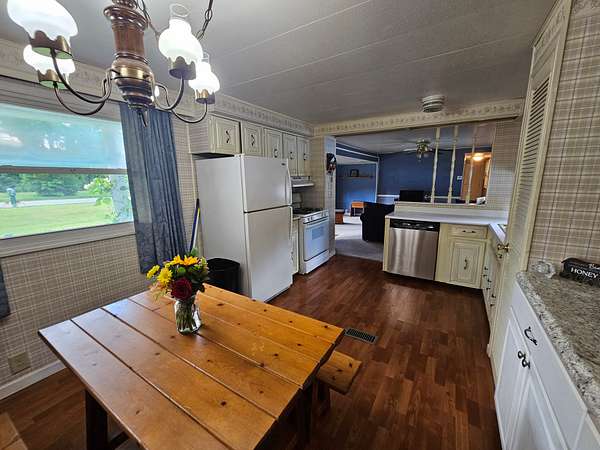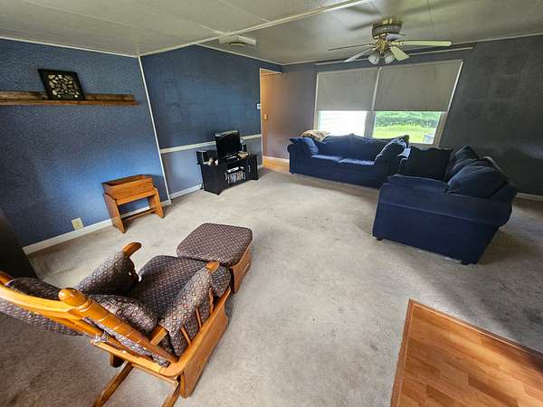 Country Home for sale on 18.9 acres with a huge yard & woods for hunting in Liberty KyLooking for a place to settle down? How about this lovely country home for sale in Liberty Ky, with 18+ UNRESTRICTED acres, having a good balance of wooded and tillable ground makes this place the perfect country retreat. Featuring 2 bedrooms, with a bonus room that is set up as a third bedroom with a closet. In the primary bedroom, you will find a good sized closet, and a walk-in that is ready for conversion to a second bathroom. A good sized eat in kitchen offers plenty of room, tons of cabinet storage and great views out the windows of the property. All appliances included! The home is a mobile home that has been updated. The well thought out additions make it roomy but cozy. Outside is a double car carport with a covered back porch, perfect for late evening relaxing and bird watching. Two storage buildings, one is site built on a concrete slab, measuring 15'x15', the other is manufactured and is a high beam 12'x24', both offer tons of extra outdoor storage, or perfect for that he shed/ she shed you've always wanted. Deer and turkey frequent the back yard adding to the country charm. The yard is just at 2 acres, with mature raspberry, blueberry, and blackberry bushes. Two rose gardens, a shade garden, and an herb garden are well established. An above ground swimming pool is negotiable, set up ready for tons of summer fun! You will have lots of room to roam in the yard, but if that is more than you want to mow or maintain, add a fence and you would have plenty of room to make this a small hobby farm. High Speed internet makes it perfect for working from home. Located 5 minutes from town and shopping, and only 4 miles to beautiful Lake Liberty where you can fish, canoe and hike.