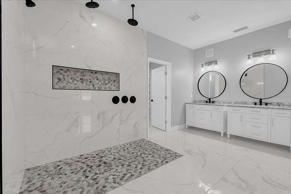 Luxury 2023 Barndominium (5000 sqft) with three(3) spacious Master bedrooms, Exceptional Garage & Work Space with NO-HOA on 2.5 acres fenced property.