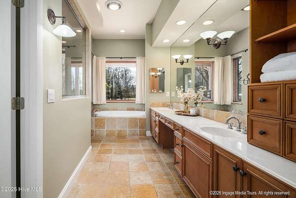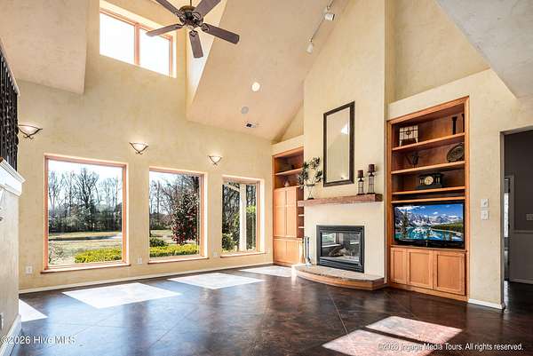 - Bookcases, Ceiling Fan(s), Entrance Foyer, Gas Log, High Ceilings, Kitchen Island, Master Downstairs, Mud Room, Pantry, Solid Surface, Sound System, Walk-In Closet(s), Walk-In Shower