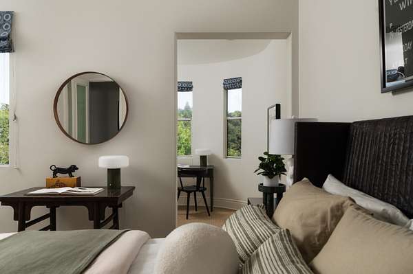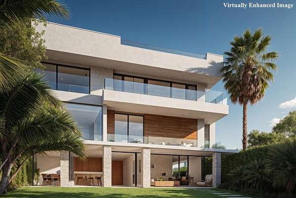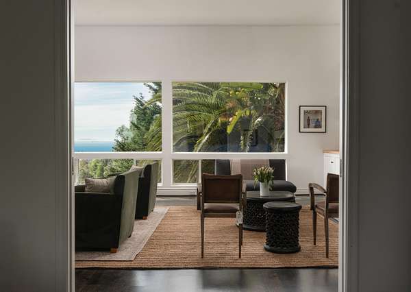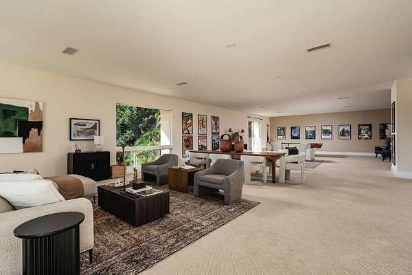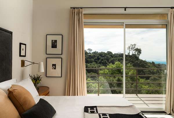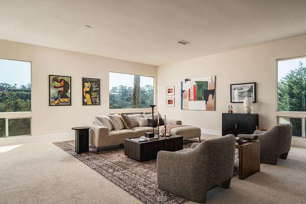 Perched atop the coveted Eucalyptus Hill neighborhood, this private estate is enveloped in lush greenery, capturing ocean and mountain views. Set on 4+ acres, the 4-bedroom residence offers a refined sense of scale, with soaring ceilings and a light-filled, open layout designed for both daily living and gathering. The ground-floor primary suite is a serene sanctuary, complete with a generous walk-in closet and sunrise vistas. The middle level offer three additional bedrooms, a spacious family room and access to the private backyard. On the lower level, a flexible space lends itself to a gym, wellness retreat, or additional storage, while the rooftop terrace crowns this rare and remarkable offering in an ultra-private setting.