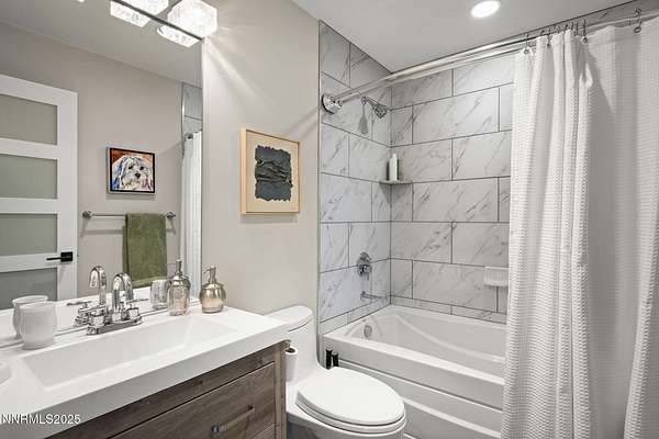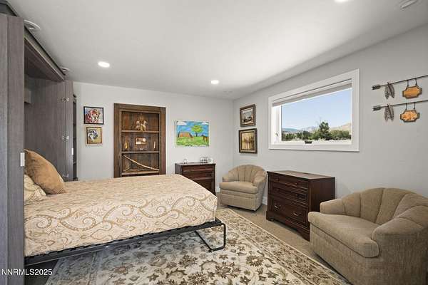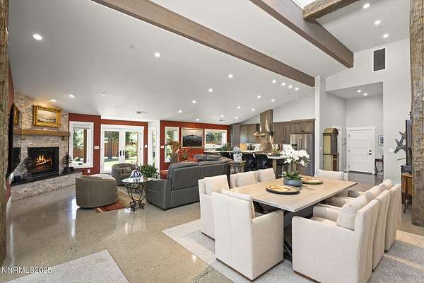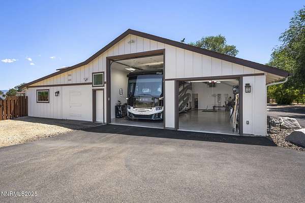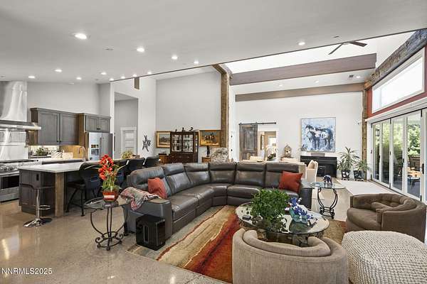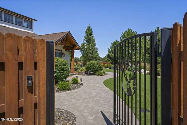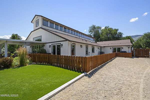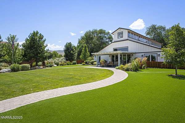 An extraordinary estate gracing 3.1 gated, level acres in the prestigious westside of Carson City. This property offers privacy, freedom, and flexibility with stunning Sierra and valley views and no HOA. This one-of-a-kind 6,000 square foot barn conversion seamlessly blends western character with modern luxury in an artfully reimagined space. Although originally constructed in 1946, this residence underwent a complete transformation, stripped to the studs and masterfully reimagined from a former barn into a stunning custom home. Every element was thoughtfully upgraded, including all-new plumbing, electrical, HVAC, windows, and high-end finishes throughout. The result is a seamless blend of timeless character and modern luxury. Bathed in natural light, the open-concept great room creates a sense of volume and ease, with soaring ceilings, exposed beams, and a seamless flow perfect for relaxed living or refined entertaining. Impeccable finishes, bespoke details, and designer touches elevate every inch from the gourmet kitchen to the expansive custom wall-to-wall glass door framing the back patio and landscaped grounds. The private primary suite is a sanctuary, featuring a spacious walk-in closet, spa-inspired bath, and direct access to the serene backyard. An extraordinary blend of art and architecture, this home is as much a gallery as it is a home. Set amidst meticulously maintained grounds, the property features thoughtfully curated landscaping that doubles as a living canvas, where sculptural elements and botanical design create moments of beauty at every turn. Pathways wind through lush greenery and hand-selected art installations, offering a tranquil and inspiring retreat. Every outdoor space has been designed with intention, framing the home with a sense of serenity and timeless sophistication. Perfect for the collector, the gardener, or anyone seeking elevated, artful living. Ideal for RV, car, or horse enthusiasts, and those seeking peace, space, and Nevada's tax advantages, the property includes a 6-car garage plus dedicated motorcoach and RV parking with hookups. A private gated driveway leads to the beautifully landscaped grounds with walking paths, 50 mature trees, and wide-open areas perfect for dogs and outdoor enjoyment. Just minutes from shopping, golf, top-rated medical facilities, and Lake Tahoe, this rare opportunity offers the ultimate in quiet, elevated living--where your lifestyle sets the rules.