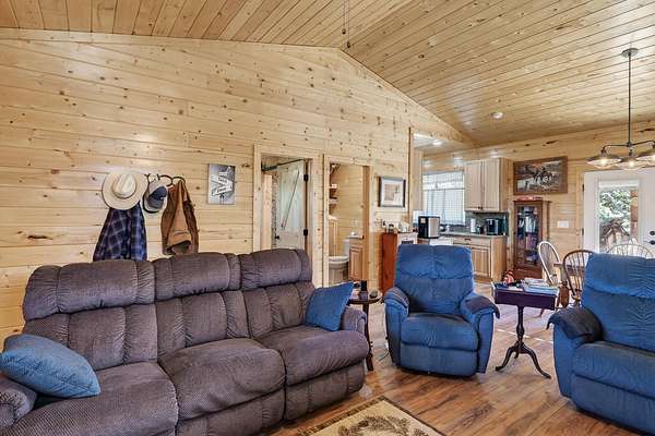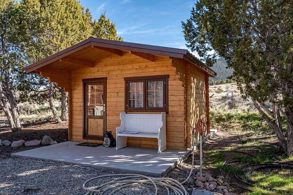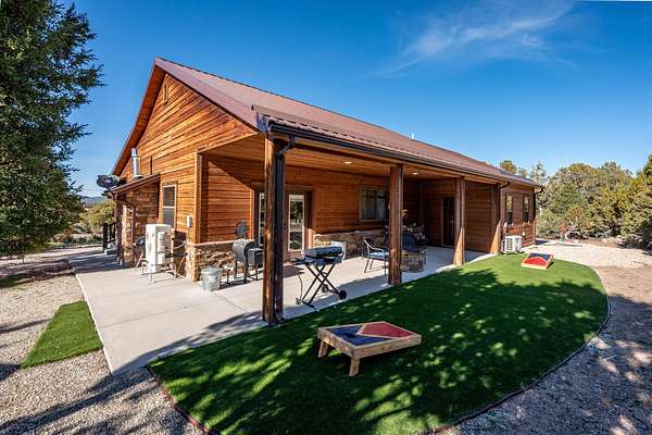 This 1,200 sq ft single-level cabin offers 2 bedrooms and 2 full bathrooms on 2 acres bordering Dixie National Forest. The property is well-treed and attracts regular wildlife, creating a quiet, private setting with direct access to outdoor recreation. The interior features an open living and dining layout with a gas fireplace, providing a functional and comfortable main living space. Both bedrooms are well-sized, and the two full bathrooms add convenience for guests or shared use. The home is equipped with in-floor heating, mini-split air conditioning, and a water softener for year-round comfort. Outside, the property includes a 16x24 shop suitable for storage, equipment, or projects, along with a 9x12 bunkhouse that can be used for guests or additional space. A separate storage shed adds further utility. Furniture is negotiable, offering a move-in ready option if desired.