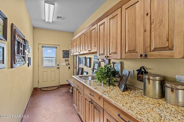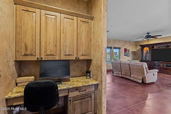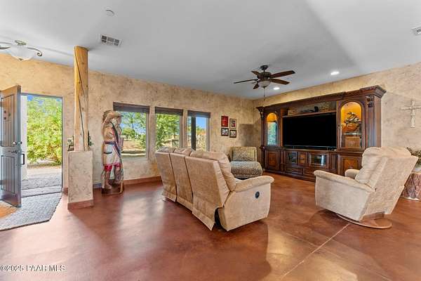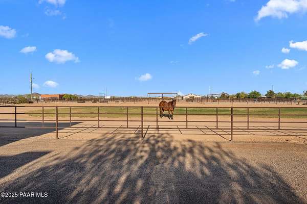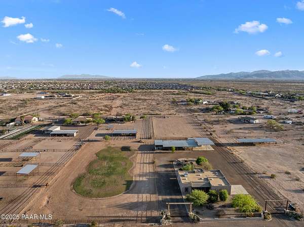 Stunning Santa Fe-Style Horse Property on Over 2 Acres in Surprise, AZ. Step into timeless Western elegance with this breathtaking Santa Fe-style home nestled on just over 2 pristine acres of fully fenced horse property. Located in the desirable area of Surprise, Arizona, this custom estate blends rustic charm with modern luxury, offering the ultimate desert oasis for horse lovers, entertainers, and RV enthusiasts alike. Inside, the home showcases rich Southwestern character with granite countertops throughout, a spacious open-concept floor plan, and generously sized rooms filled with natural light. The oversized laundry room and updated appliances add function and style, while the mature, impeccably maintained landscaping creates a serene, resort-like setting. Multiple covered patios