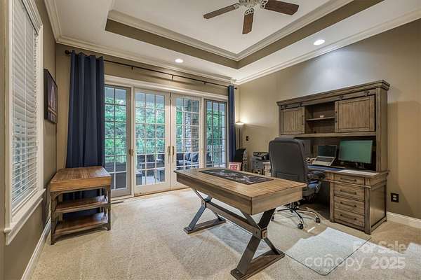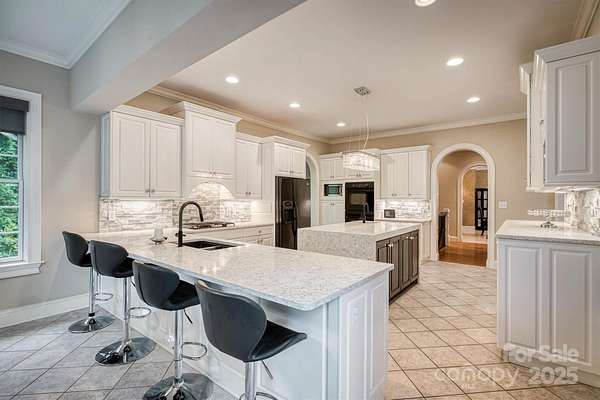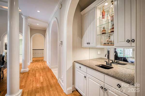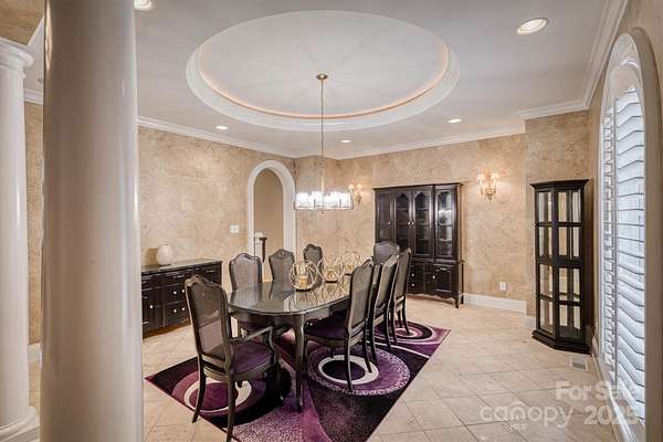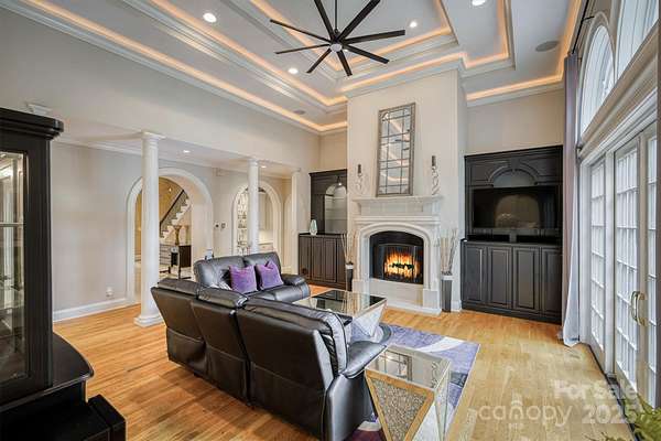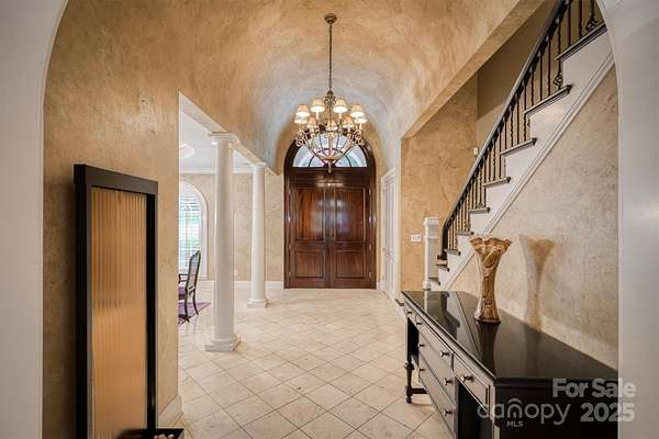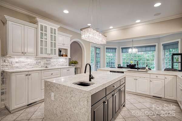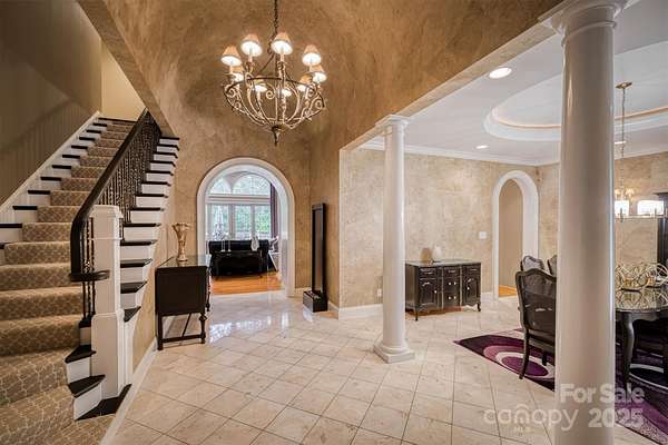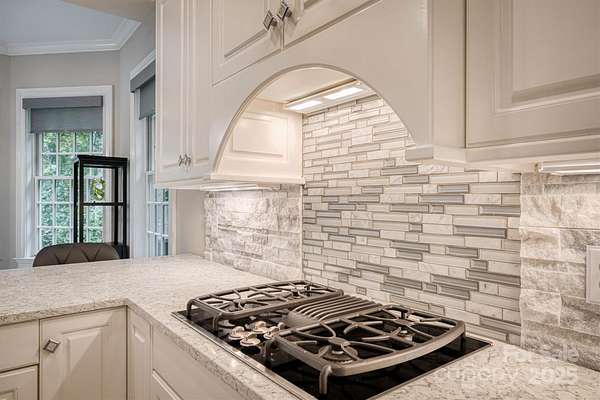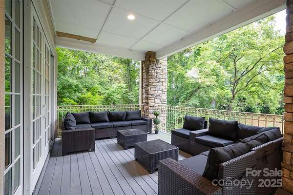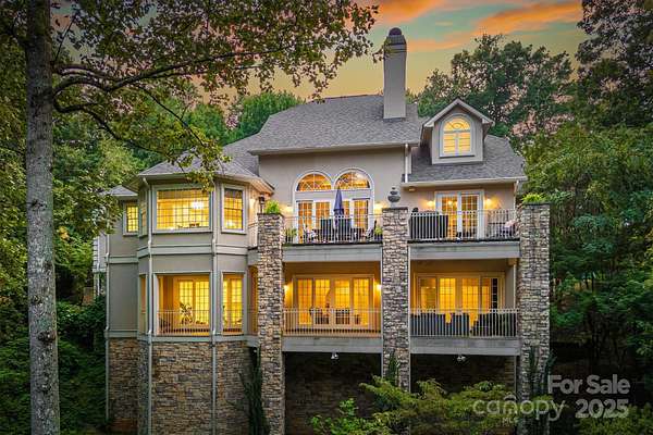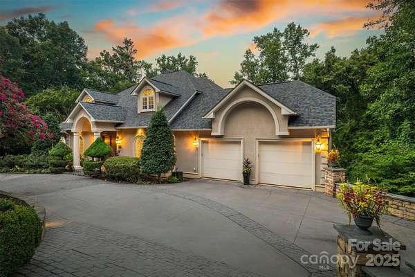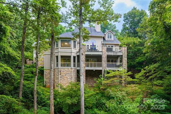 Secluded Elegance in the Heart of Hickory Tucked away in a serene, private setting yet just minutes from downtown Hickory, this exquisite three-level estate offers over 6,100 square feet of refined living space. With 5 spacious bedrooms, 4.5 luxurious baths, and unmatched privacy, this home is a rare blend of sophistication and comfort. Step through the arched grand entrance into a sun-drenched interior featuring soaring 15-foot ceilings with custom tiered lighting, a dramatic two-story great room with gas fireplace, and expansive open-concept living areas. The main-level primary suite is a true retreat with layered ceiling lighting boasting a large spa-inspired bath with heated floors and dual vanities, soaking tub, dual walk-in closets with an extended room for a private sitting room, closet, or office. The chef's kitchen is fully updated with quartz waterfall countertops, stone backsplash, gas cooktop, and a bright breakfast nook with custom shades. Upstairs oversized bedrooms offer generous closets and beautifully updated bathrooms. The fully finished 10-foot ceilings lower level includes a great room with fireplace, a fitness room or additional bedroom, a large office or guest suite, full bath, hobby room, and abundant storage-all with walk-out access to the tranquil backyard. Enjoy outdoor living on the expansive double decks that span the length of the home, overlooking a peaceful, tree-lined yard with a natural stream. Additional Highlights: Oversized 2-car garage, elegant arched doorways and entryways, new 2024 roof with 50-year warranty, custom plantation shutters with crown molding throughout, updated modern light fixtures in every room, and many more upgrades. Surrounded by open land for a truly private, park-like setting. Minutes from downtown Hickory's shopping and dining, Lake Hickory, several parks, and top-rated private schools.