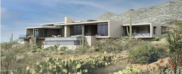 Perched on the highest lot in the exclusive and highly sought-after Pima Canyon Estates, this architectural triumph offers commanding 360-degree views that stretch across the shimmering cityscape below and the majestic surrounding mountains. Designed by the award-winning Kevin B. Howard Architects, this residence is a harmonious blend of bold modern design, timeless elegance, and unrivaled craftsmanship. Boasting 6,000 sq ft, 5 spacious bedrooms, 5.5 impeccably designed bathrooms, a dedicated office, and a 4-car garage, every element of this home speaks to luxury and precision. The interiors are adorned with meticulously selected finishes, curated to evoke both warmth and sophistication, creating a living experience that is as visually stunning as it is comfortable. At the heart of the home, the chef's kitchen is a true showpiece. Outfitted with top-of-the-line Sub-Zero and Wolf appliances, it offers both beauty and performance. Expansive prep areas, bespoke cabinetry, and seamless indoor-outdoor connectivity make it ideal for both intimate evenings and grand entertaining. Walls of floor-to-ceiling glass surround the home, framing uninterrupted panoramic views from every angle and flooding the interiors with natural light. Whether it's sunrise over the mountains or the glittering city lights after dusk, the vistas are truly breathtaking. Step outside to a resort-caliber negative edge pool that seems to float above the city, providing a dramatic and serene focal point. The outdoor living spaces invite year-round enjoyment, with ample room for lounging, dining, and entertaining under the stars. Set within a gated enclave with only a few prized lots remaining, Pima Canyon is renowned for its privacy, prestige, and natural beauty. This is a rare opportunity to own the crown jewel in one of Southern Arizona's most coveted neighborhoods. Listing agent is related to seller.