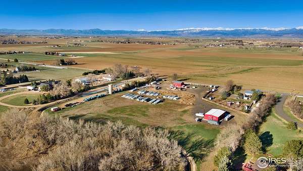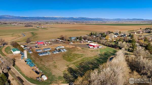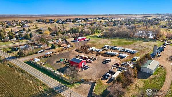 Est $5,428/moGreat opportunity to own property zoned residential inside the Town of Mead. Beautiful views and an amazing opportunity for an estate! Recently annexed and ready to build. Could be divided into 2 buildable lots. Town of Mead development approval required. Currently the property has 5 outbuildings. One 30 x 40 metal building with running water, septic and propane. Second building is a 40 x 60 metal pole barn with a concrete floor, fully conditioned. The third is an old rail car. 2 smaller storage sheds onsite. Property is required to be used as residential by 2026. Rented trailer as an office along with all business supplies to be removed prior to closing.