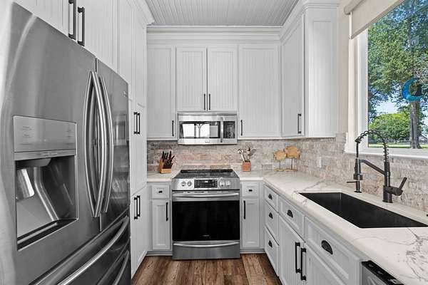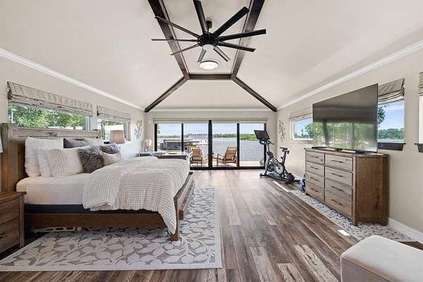 The main home sits just above the water and features walls of windows with motorized shades, Quartz countertops, durable LVP flooring, and high-end appliances--every detail designed for style and comfort.